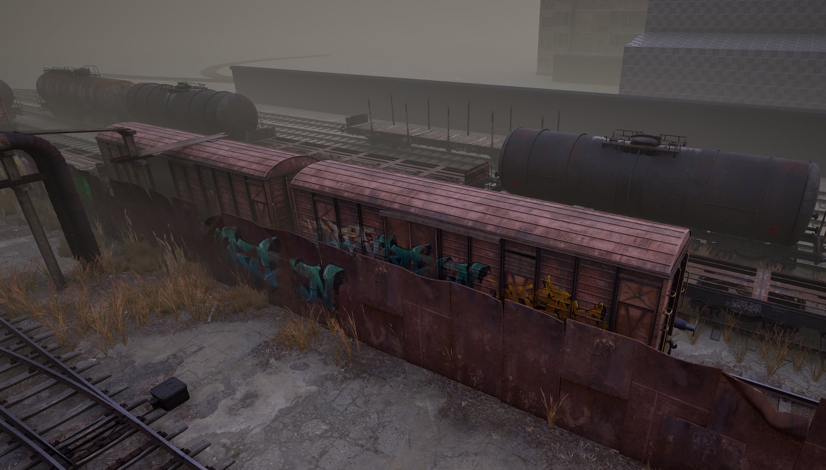 and now working on game buildings, the railyard (the main hub in the game for missions) :
