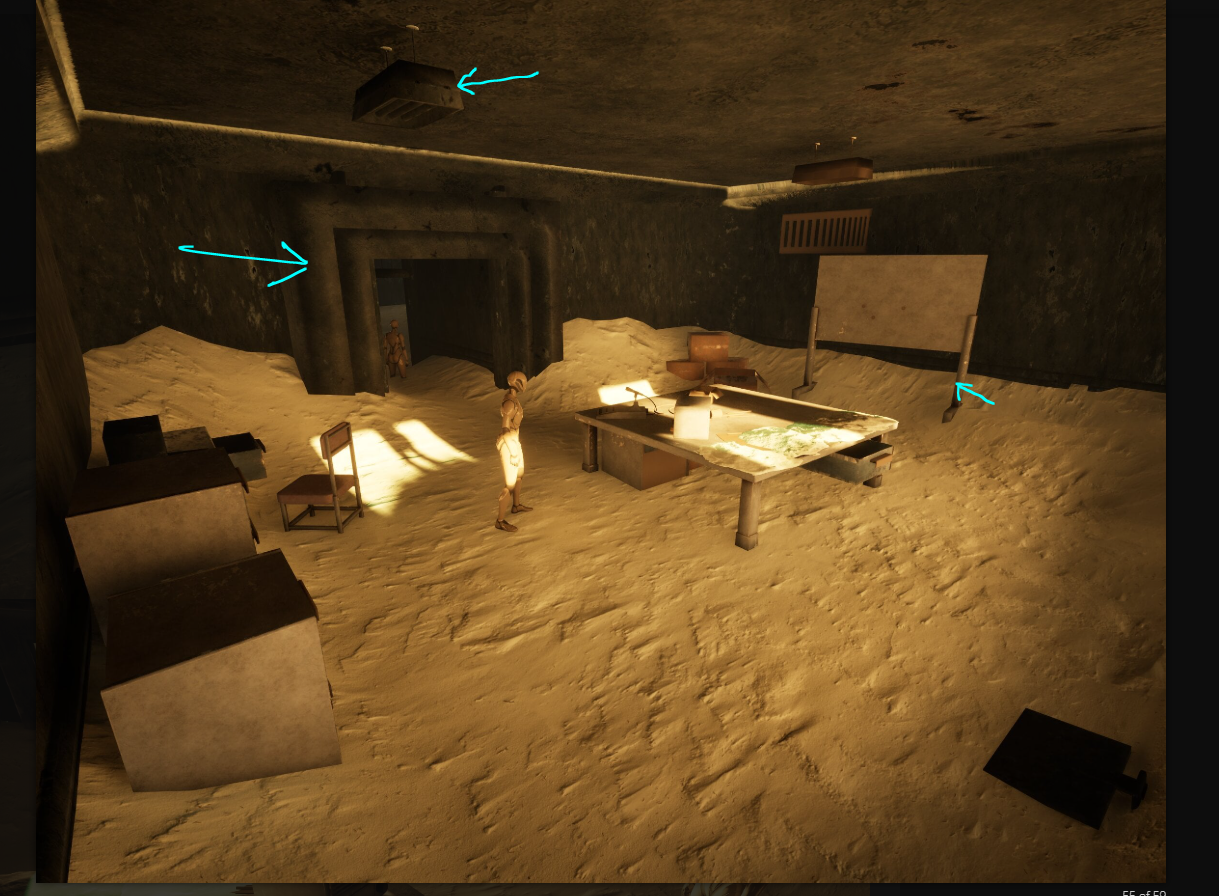 This scene explores the idea of a once-familiar classroom being transformed into a survivor-made workspace — a place shaped by abandonment, decay, and adaptation. My goal was to create an environment that felt atmospheric, believable, and rich in storytelling, using lighting, composition, and set dressing to suggest both the past life of the space and its new purpose.