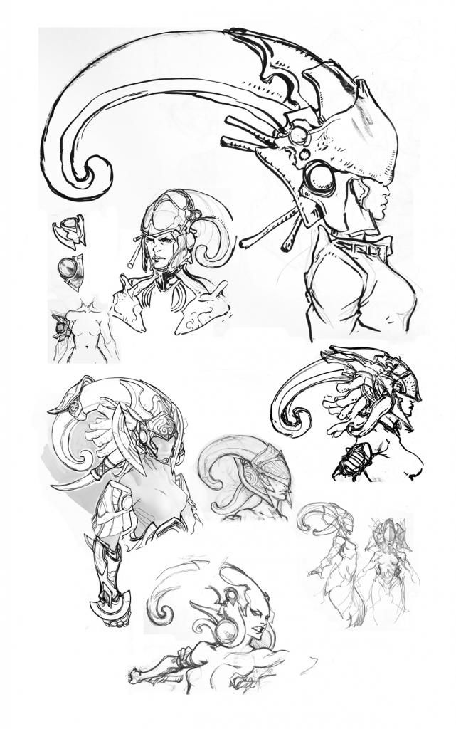 Some of the concept art done for the project (lots of other sketches and renders were done on the way too of course, like tighter designs for the swords, tail, and so on) :
