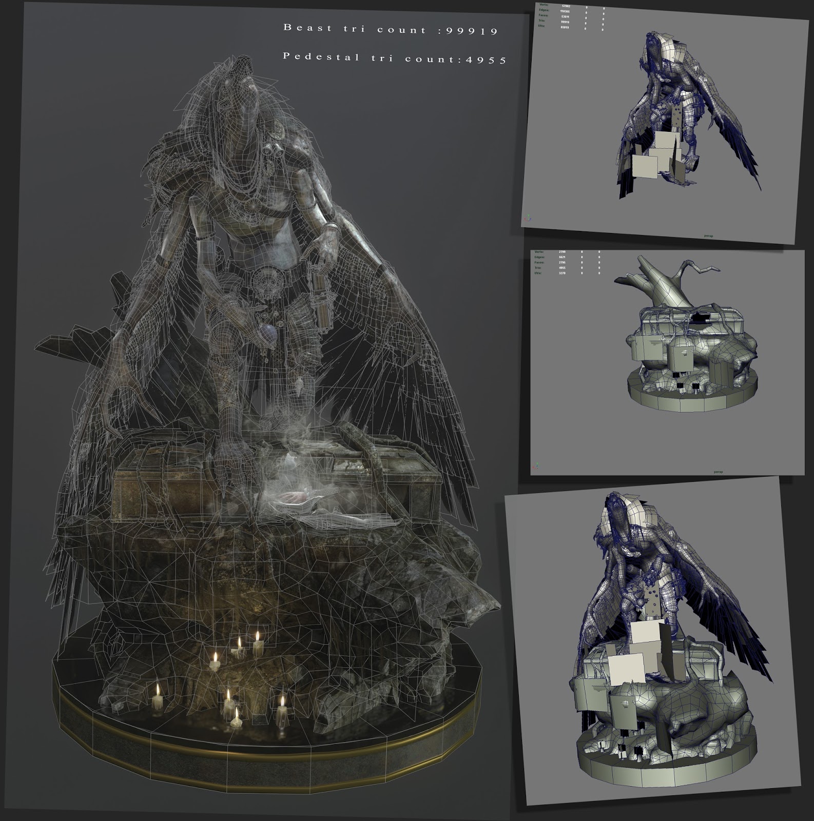 Hello friends ! This is my first time participation in any polycount challenge.Such a wonderful challenge,lot of good artist  and bunch of promising entry.Learnt lot of things last 3 months.I realized that Substance is a really good tool for 3d artist.1st time I tried it.I can't able to explore maximum because of my time crunch situation.But in pedestal and some part of exercises texturing I tried it mostly.I manage to think some story finally.
