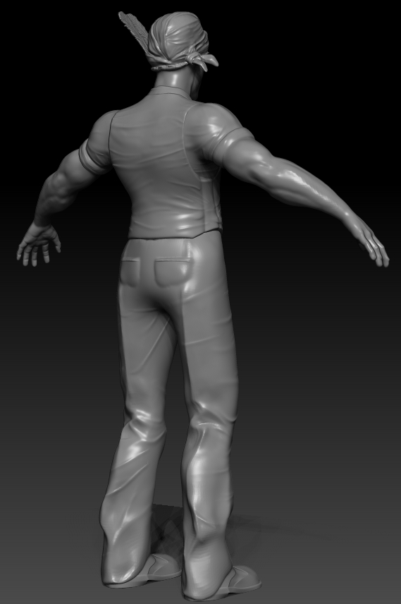 I think i can finish blocking out this guy tommorow, then moving on to blocking out the time traveler. I learned a bit today about the eyes, and triceps. I'm going to have a bit of trouble with the pants and feet. I"m not sure how i'm going to model the shoes, but hey. Also I started using some XMD brushes already, those things are fantastic.!