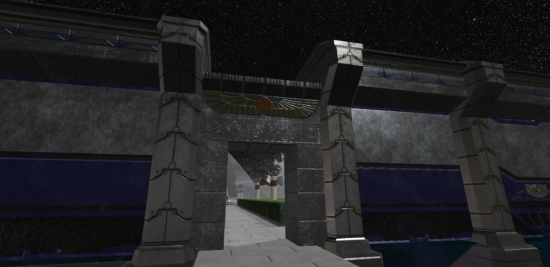 Pretty good work, did you do this from reference art or did you come up with it yourself? Also what is it rendered in right now? The only criticism I can come up with is that the textures look a bit flat but that could be because of the renderer. If not then I'd suggest adding some variation or imperfections to your stone/metal work. The anubis statue the body and the gold is shiny and perfect like a mirror all over and so is the marble on the pillar. One example that I think makes more sense or is allegorical is that you have grass and bushes outside yet the sidewalk is spotlessly clean! Unless it's supposed to be that way the sharp border makes it look very cg.