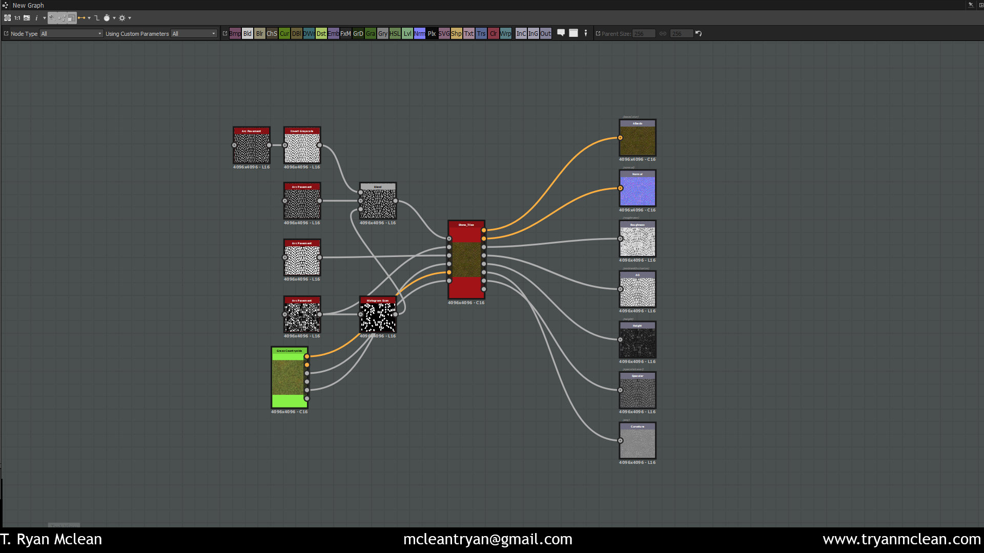 Basically the node takes several inputs for height outline, height variation, slope variation and spits out the final results. Custom nodes can also be used for grout roughness, height and colour.