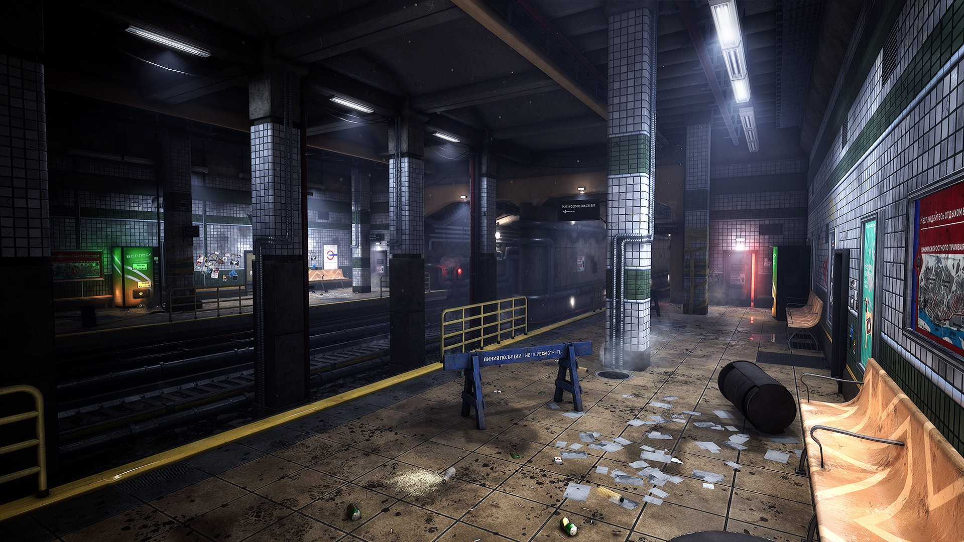 Hey Polycount, first time posting here so here goes. I've been working on this Environment for a few weeks now, and I could really use some feedback. It's an abandoned russian subway from the early 2000's, and I'm trying to give the scene a chilling vibe. The environment is not from concept. I can link my ref board if needed. The scene is intended as a game environment portfolio piece, so I could really use some serious crit.