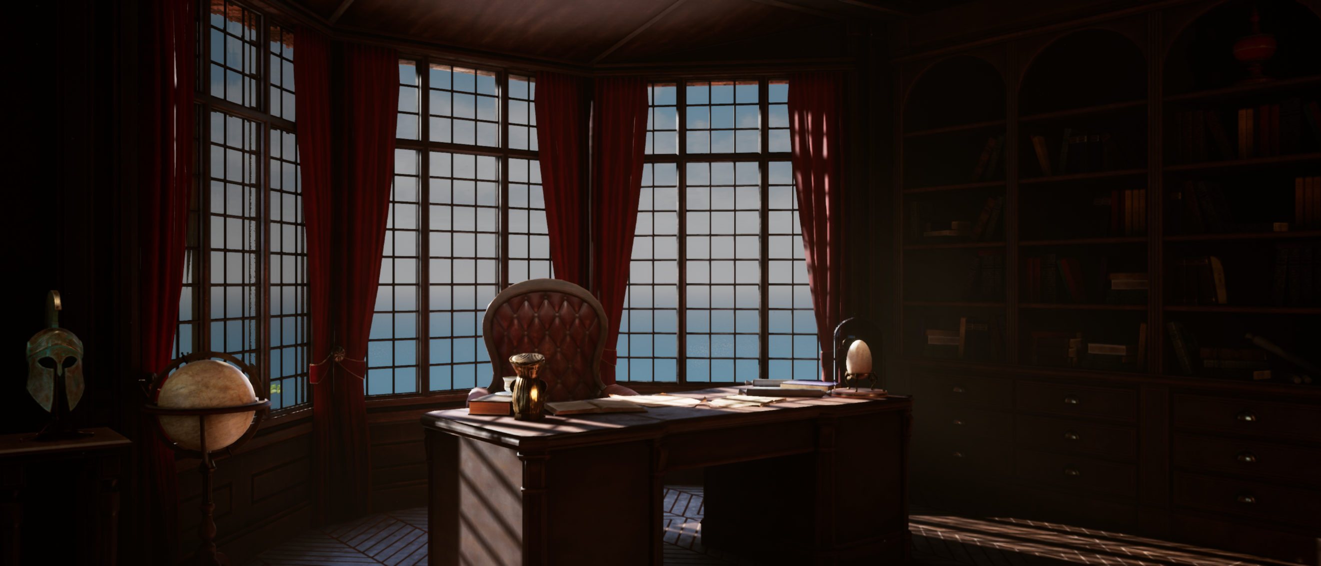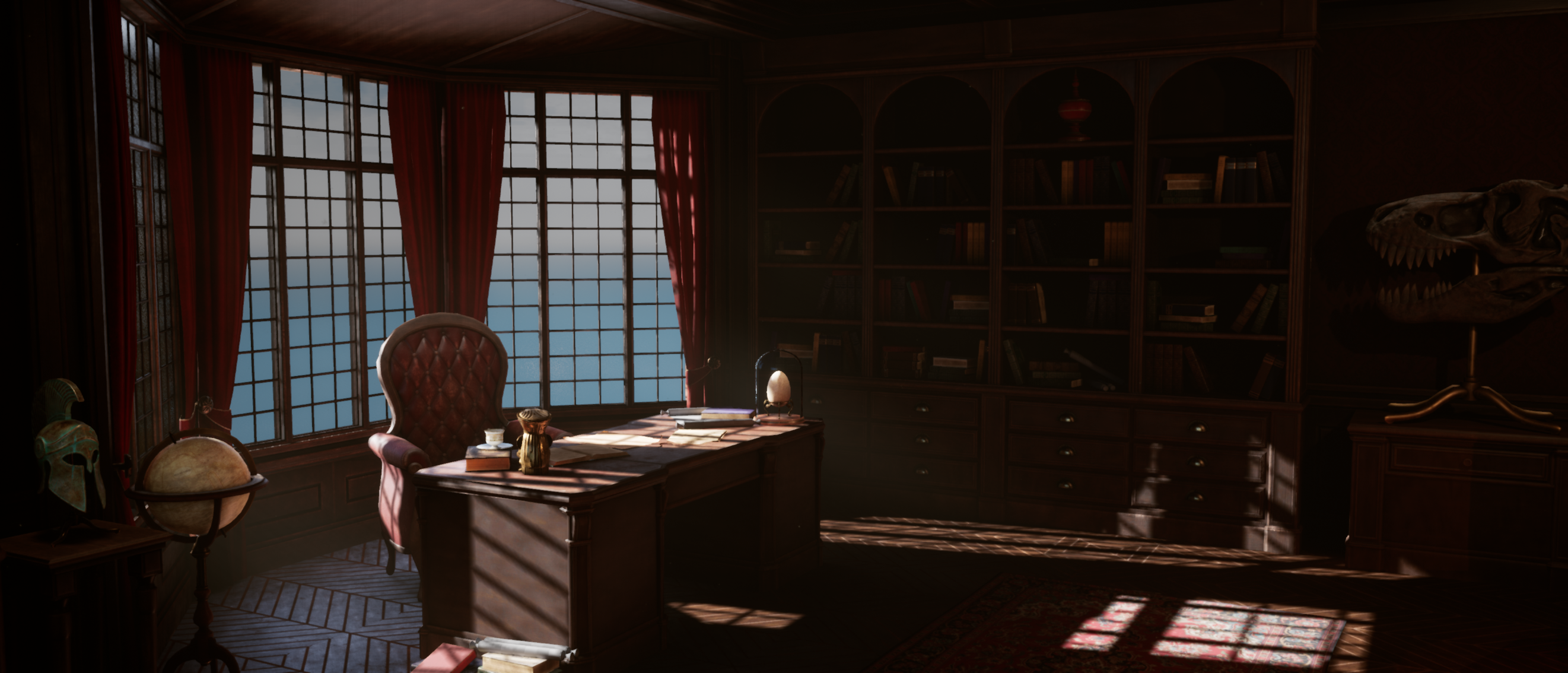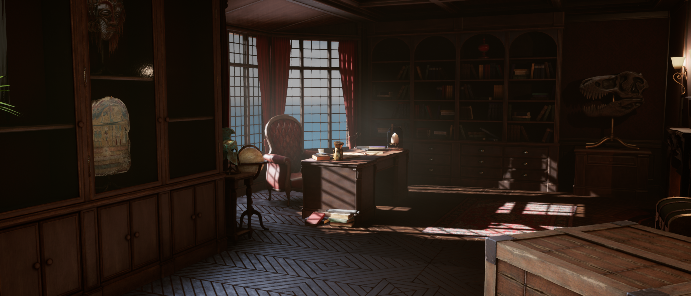I think this area could use a few more props, it seems a bit too empty for the office of an explorer