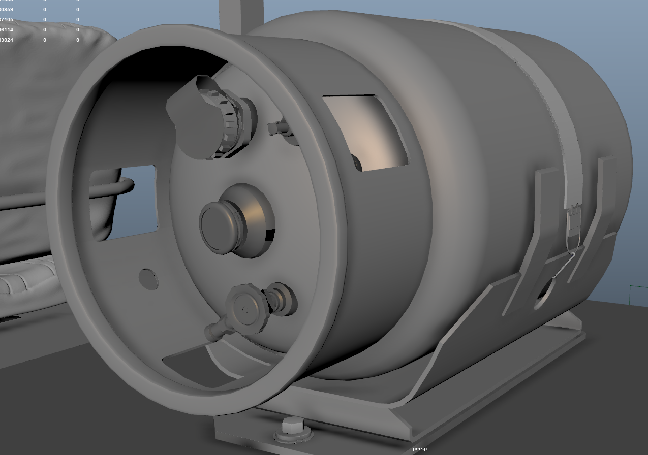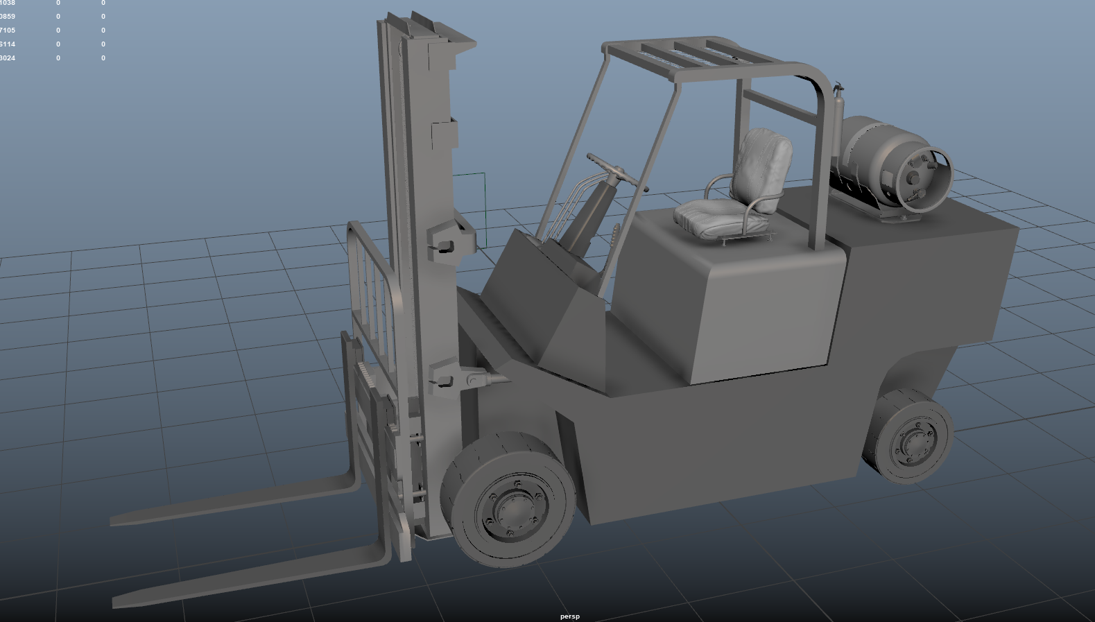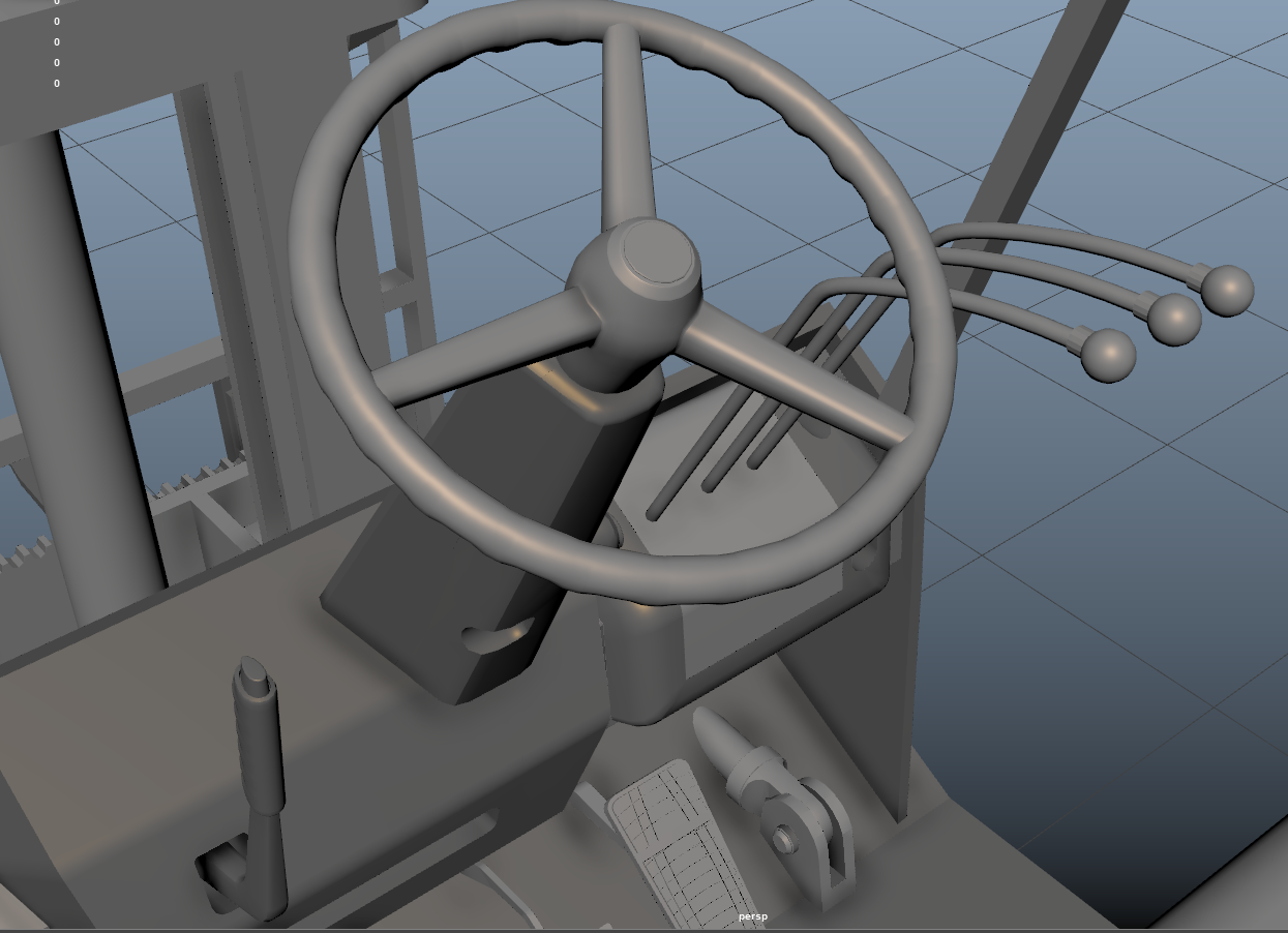 At this point I've more or less finished the mast and fork areas of the high poly and am currently fleshing out the floor board area.