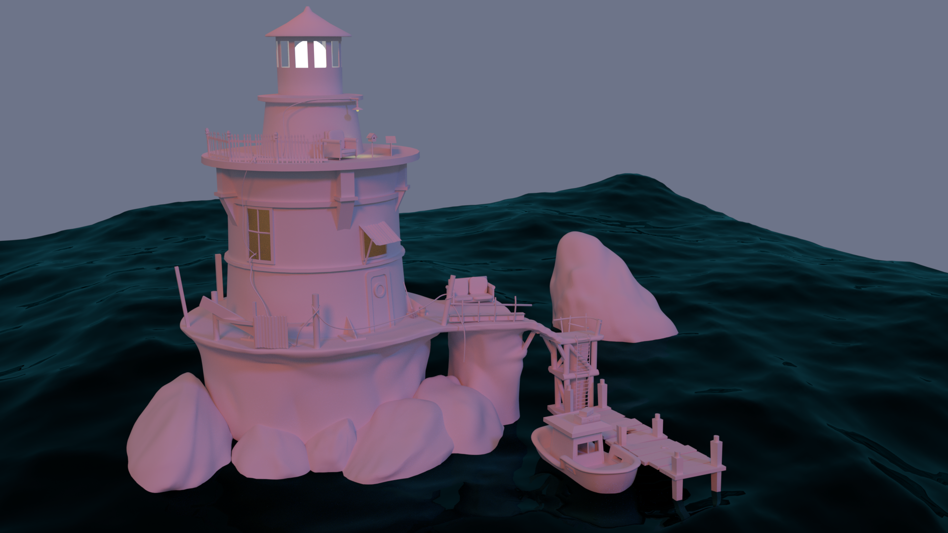 Hey guys I made a general block out I have a couple of references for the props and lighthouse but I wanted some critiques since I want to improve my modelling skills.