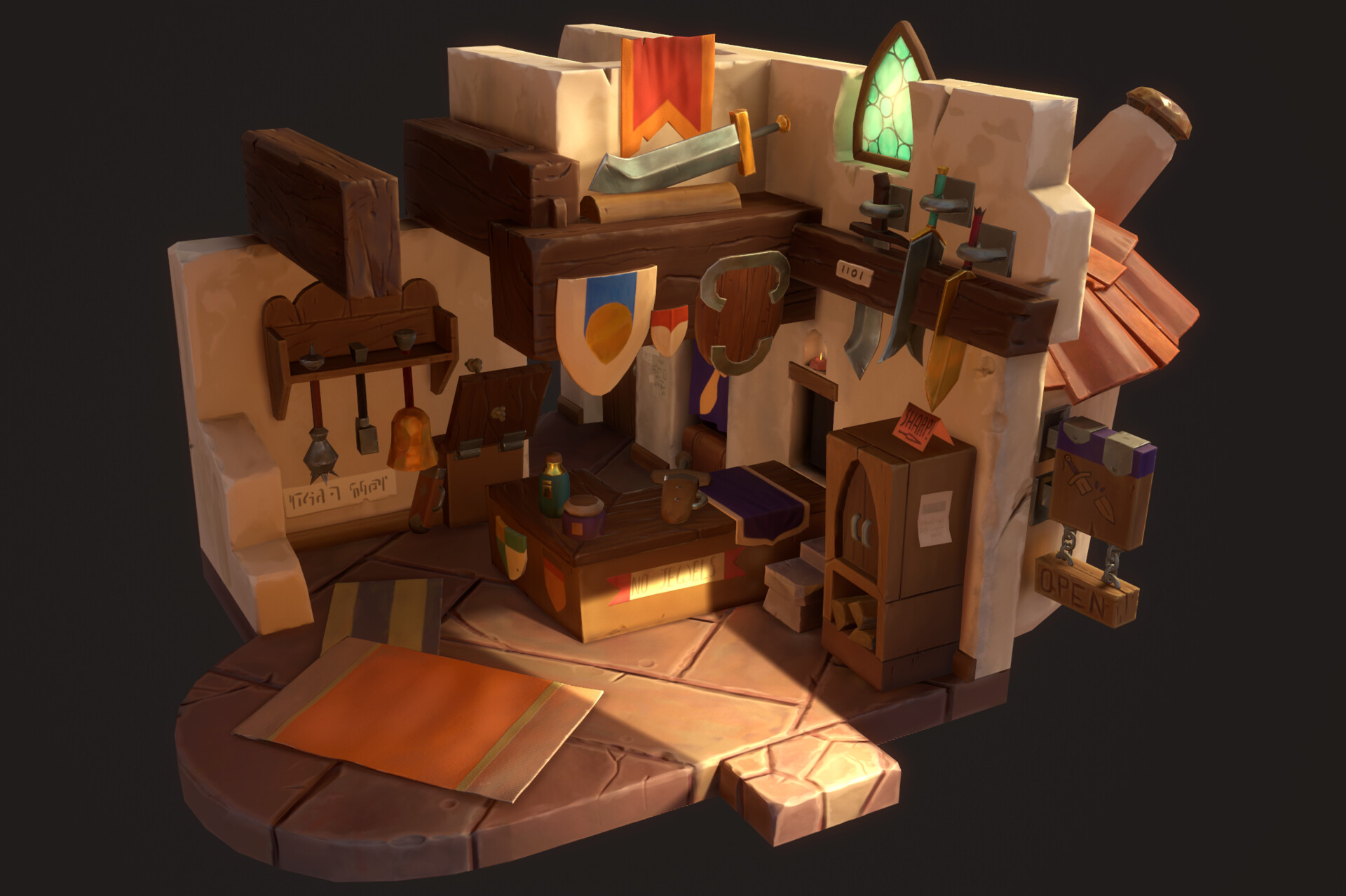 recently I did this 3d diorama to learn a stylized PBR workflow. I firstly modeled all the elements in low poly, then sculpted details without changing too much the forms, so I don't have to create a new lowpoly for the baking. Finally I textured on substance painter after baking normals, curvatures and AO.