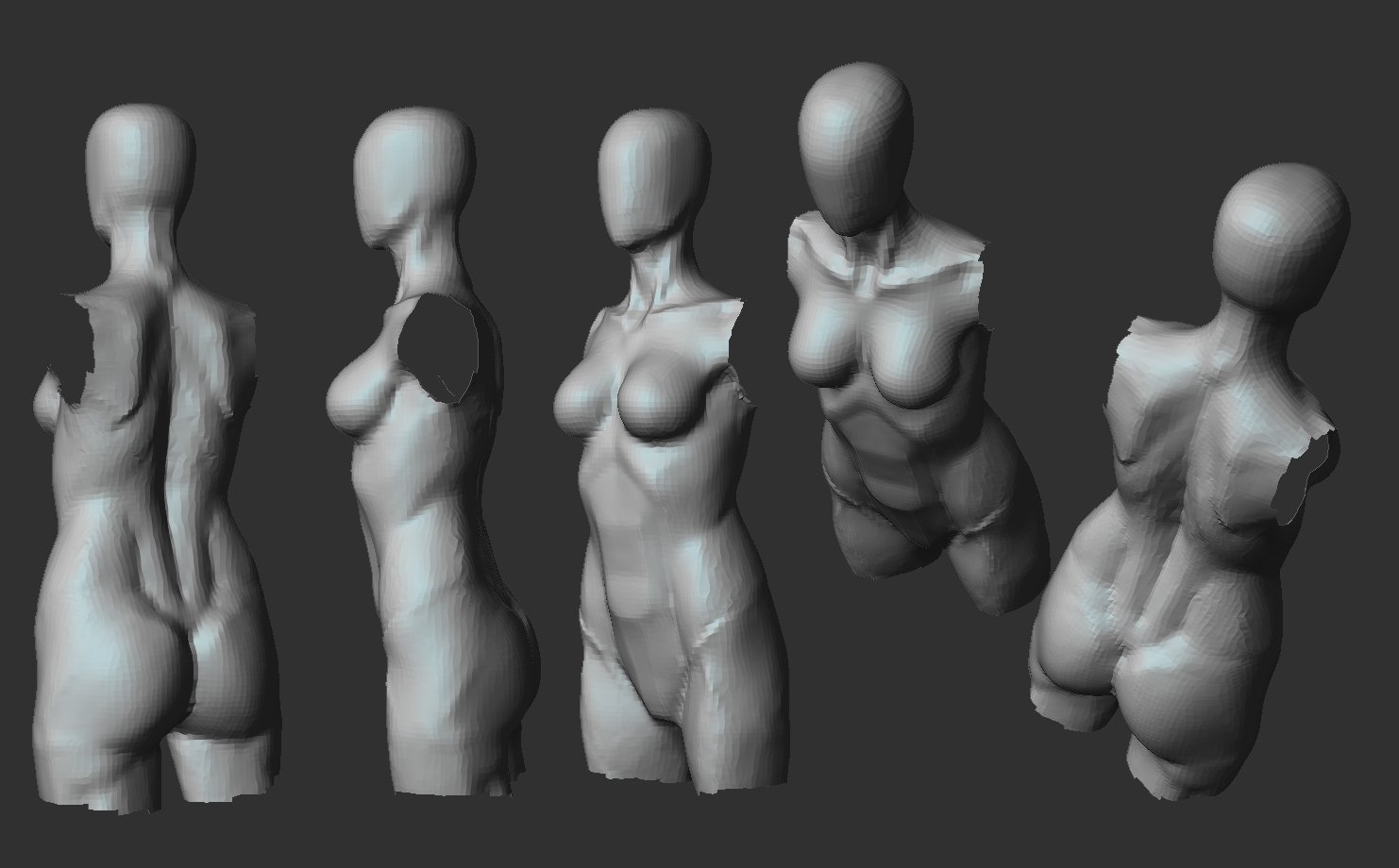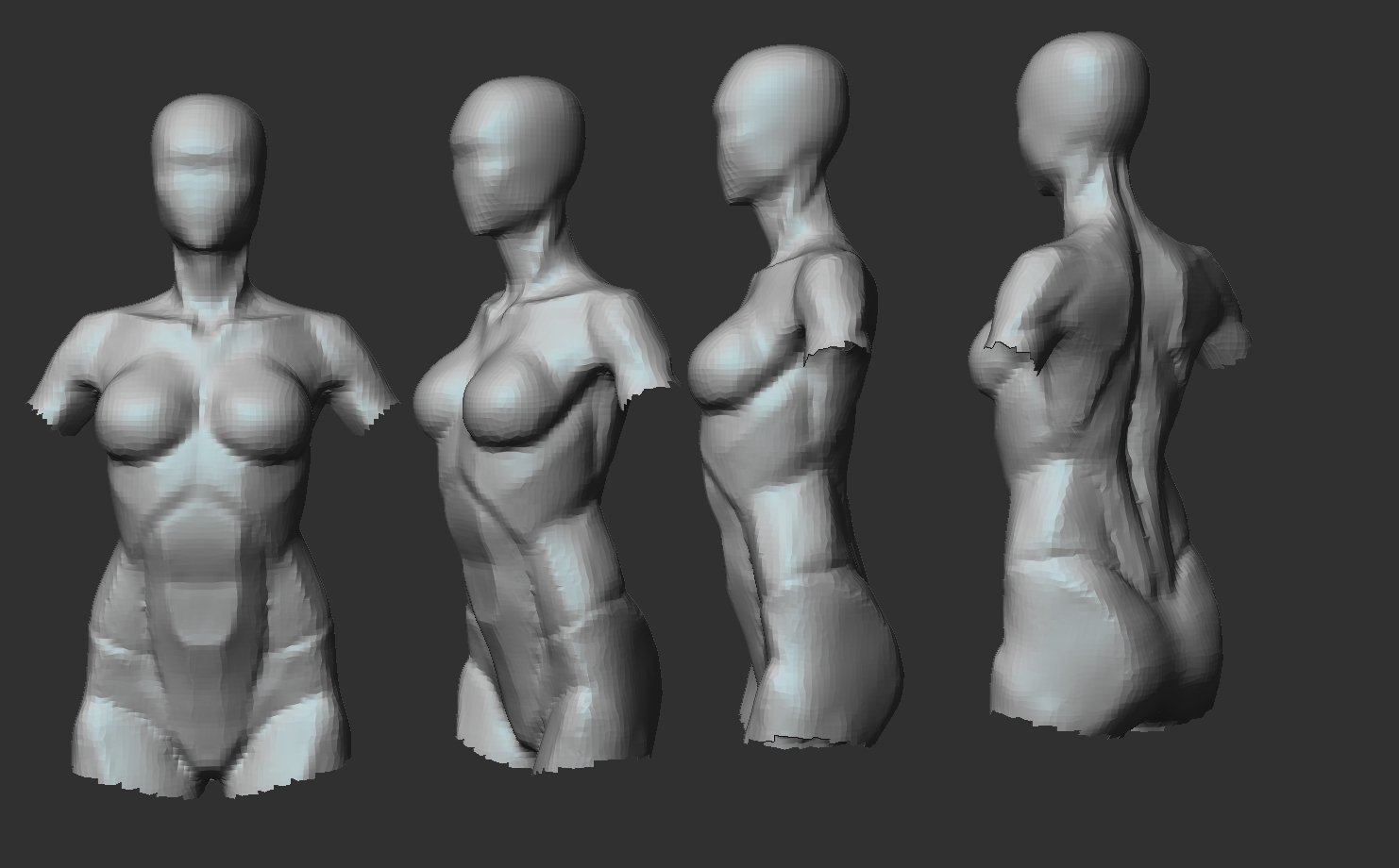 I didn't have much time today, so I thought I'd just play a little bit and came out with this. It's still wheel-spinning; they all look basically the same. But I suppose if I can remember and reproduce the planes that make up a torso to that point on a similar quality each time, it means I'm remembering them properly, at least. I want to push that one a bit more and see just how much I can replicate the reference on that level. I think I'm still fucking something up; I think that's why I'm still fixated on this thing. I feel like there's something wrong, but I can't work out what, so I'm just spinning my wheels doing the same thing over and over again trying to work out what it is. Although, it has been said that's the definition of madness...