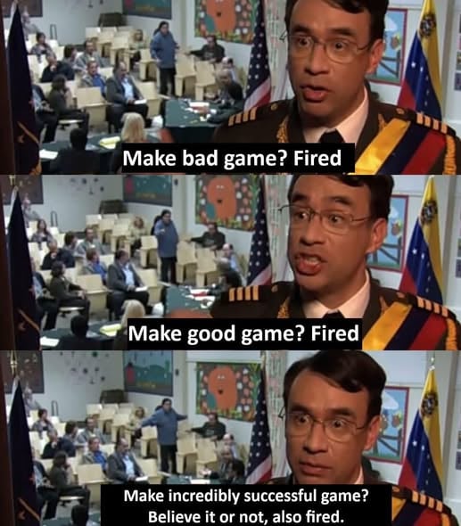 To me as a gamer, gamedev reality looks unhinged Used to be you play a good game and think "Ooh, what a game! I hope devs have plans for a sequel". Then it turned into "I hope the game sold enough so they are allowed to make a sequel".