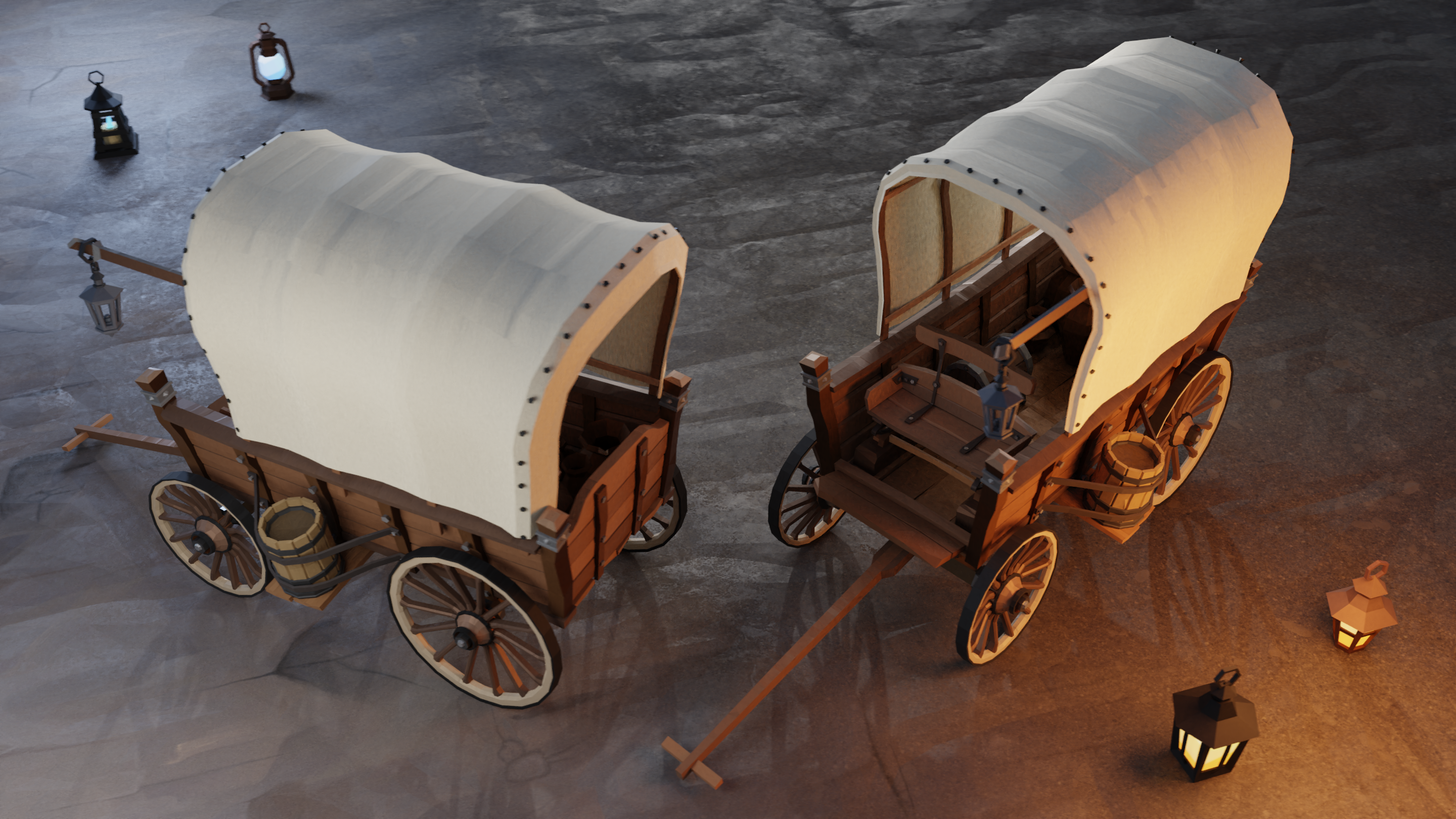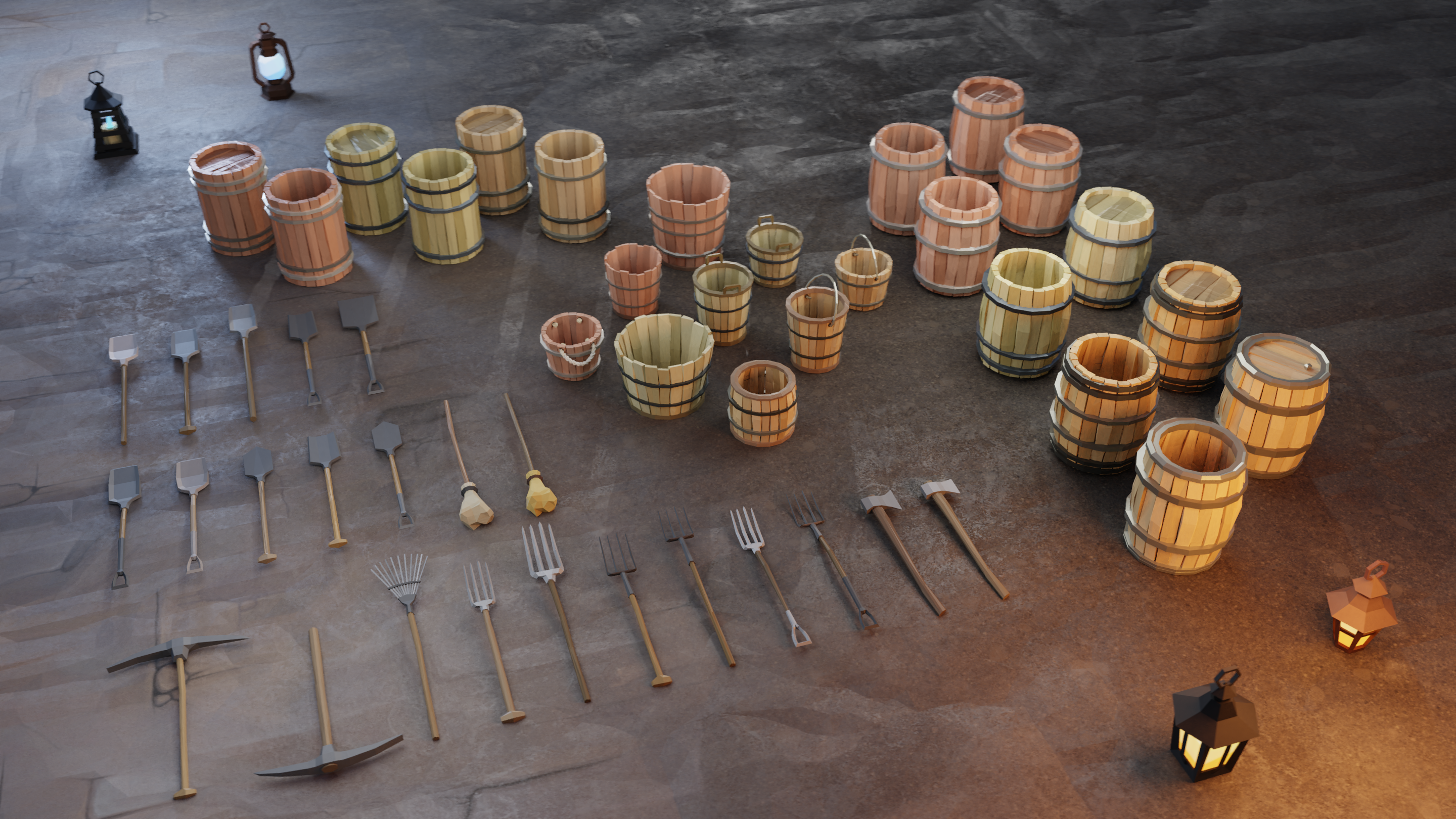 - Stylized Low-Poly with hand drawn textures and color atlasses, created many props and multiple environments, including villages, landscapes, islands, mines, forests.