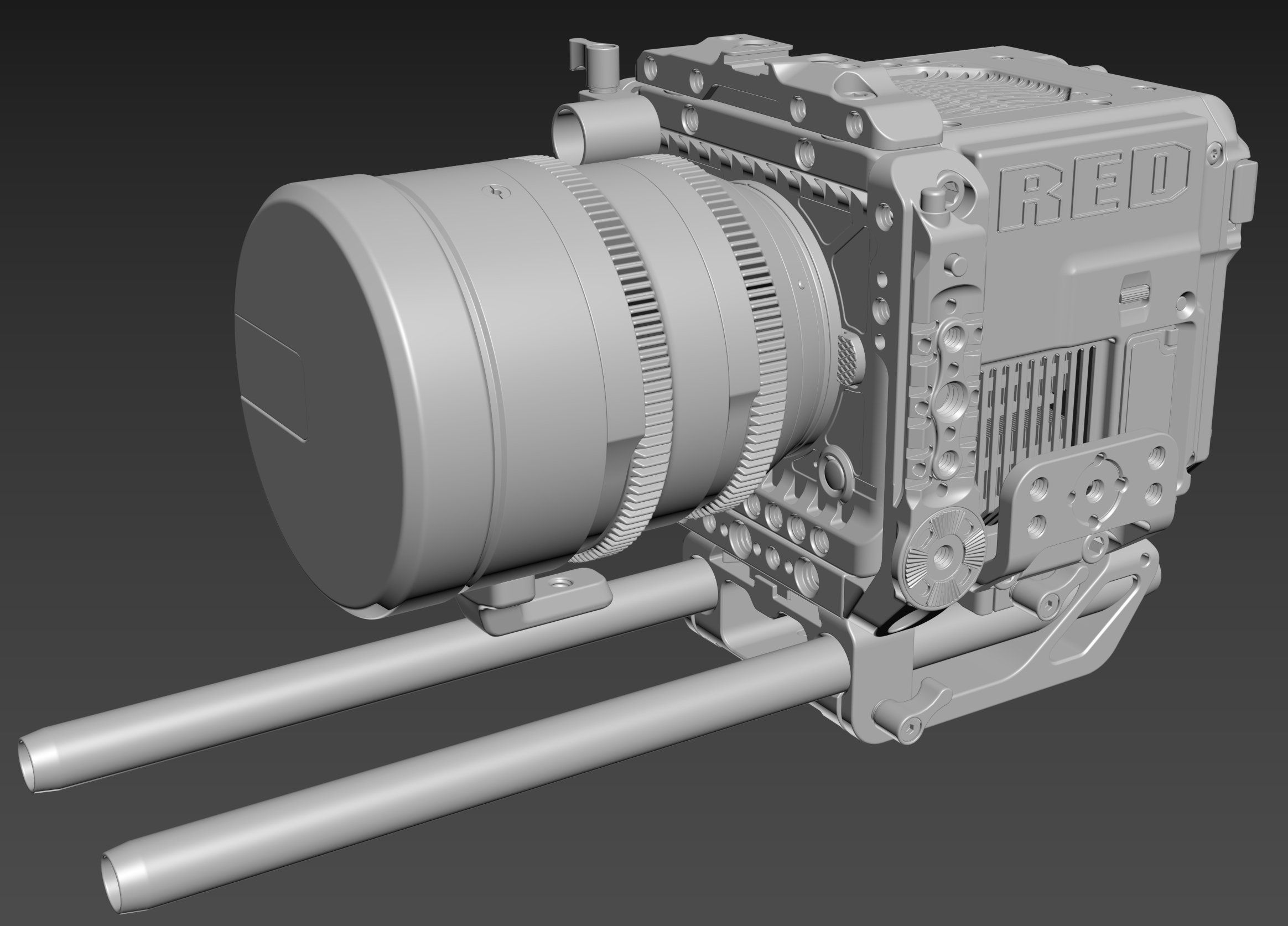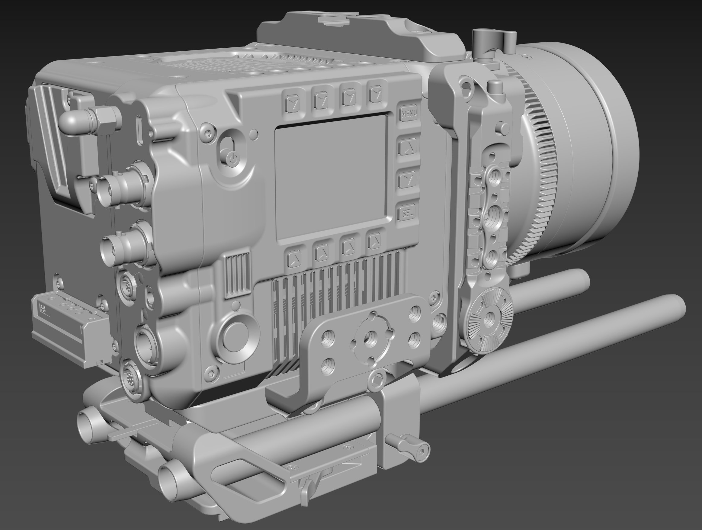 The camera itself seems to be finished. Added the last panel, some objects behind grills and bolt threads.