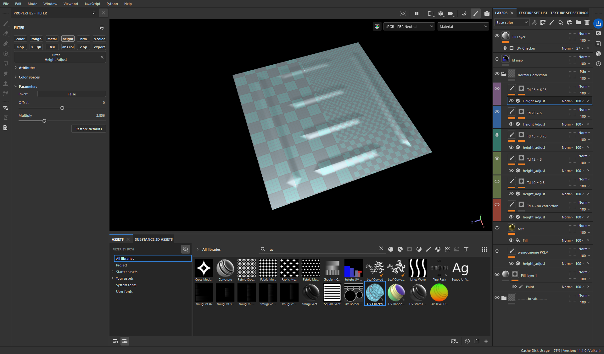 Now to properly set this filter I export a simple plane with all texel densities in my project: say I have 5 different Tds - then I divide this plane into 5 areas, unwrap them and give them those 5 Tds, then export to Painter.