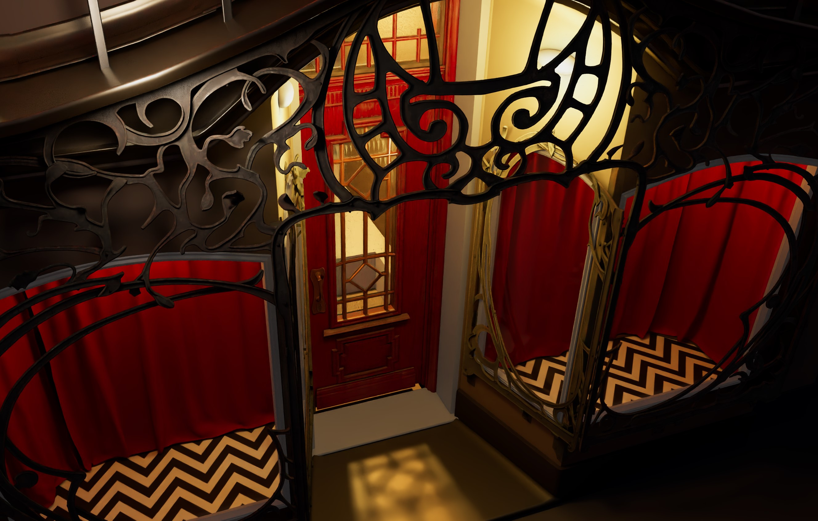 The next step is to do a low-poly 3D blockout of the whole exterior scene in Maya, which is my favorite part to do. The blockout of the exterior building will give me the proportions and size constraints for the interior.
