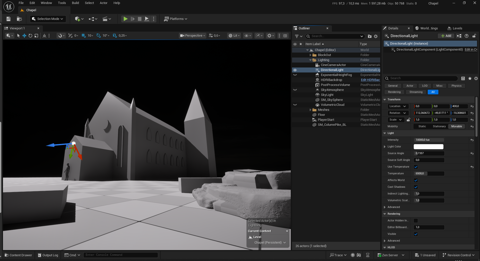 Hi! I've started working on a new environment for my portfolio and encountered a problem with the lighting. Lighting has always been a weak spot in my projects, and I've often heard that it's important to set it physically accurately if the environment is realistic. So, I consulted the Unity cheat sheet and decided to use 10,000 lux and EV10; however, the scene is too dark, and I can barely see the HDRI. Am I missing something?