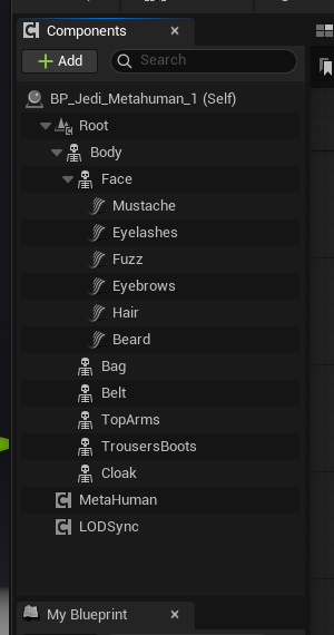 Hey! So this is outside of my wheelhouse and I'm lost. I'm working on a character that has a lightsaber hilt on her hip, I want it to bounce and move as she walks/runs etc. I may be doing this completely wrong, but it's been working so far for me. I created the clothing and brought them in as different skeletal meshes and attached them to metahuman blueprint.