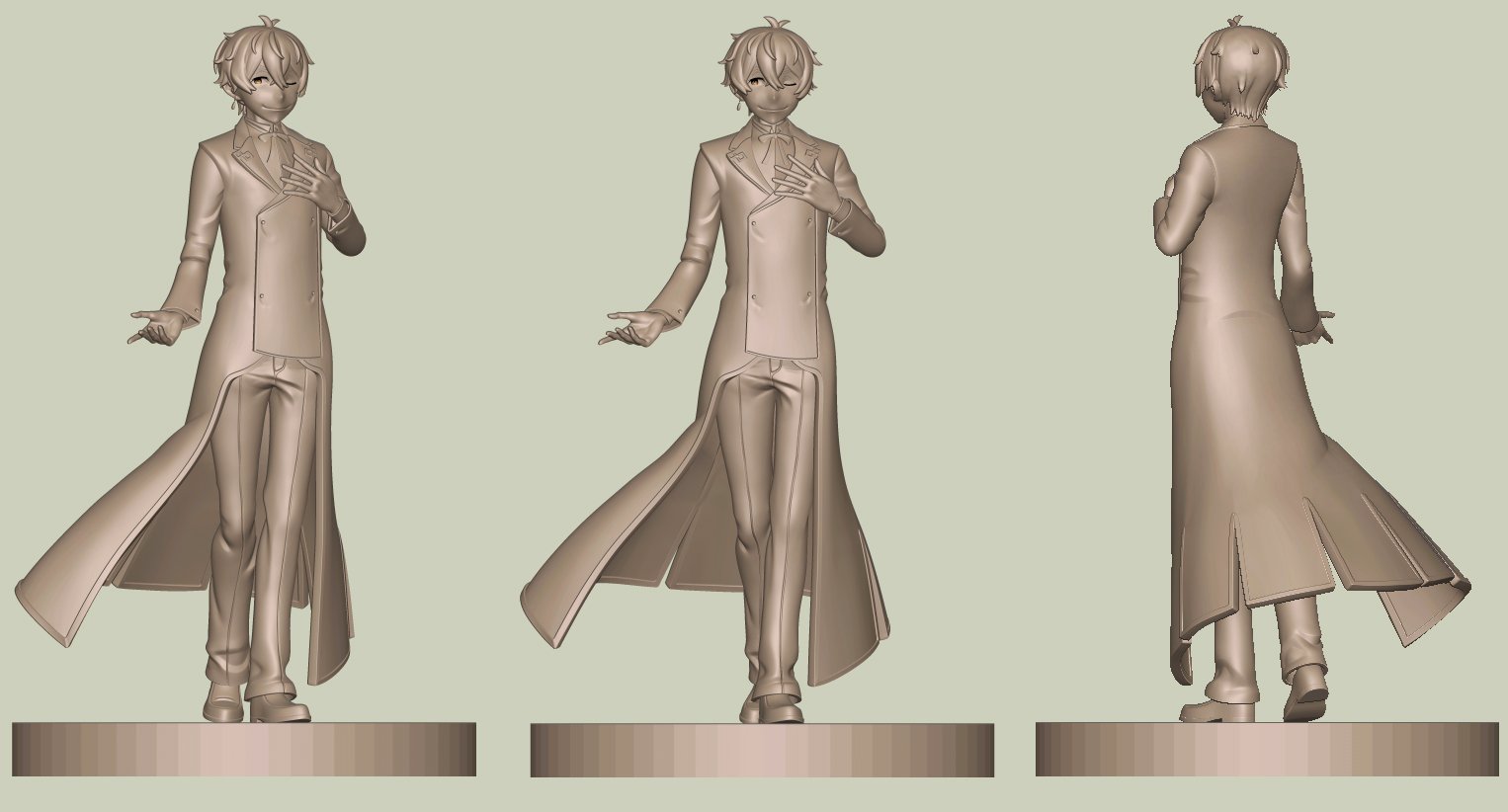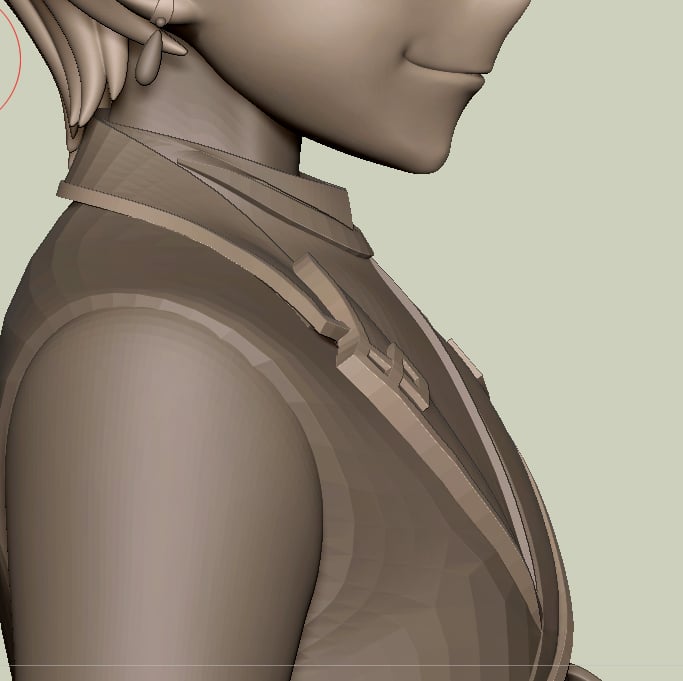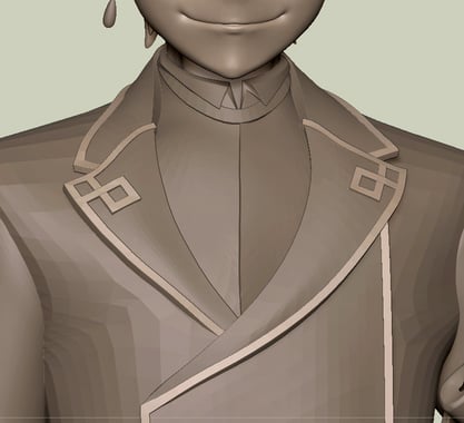- I struggle alot with clothes for two main reasons: 1) I don't know how thin/thick I should make the cloth and 2) cloth wrinkles (more on that later). I try to reference garage kits/other figurines to understand how thick/thin I should make the clothes. I think I did fine in the Lapel (because it get merged with the suit if 3dprinted) but the final bottom coat was too thick.