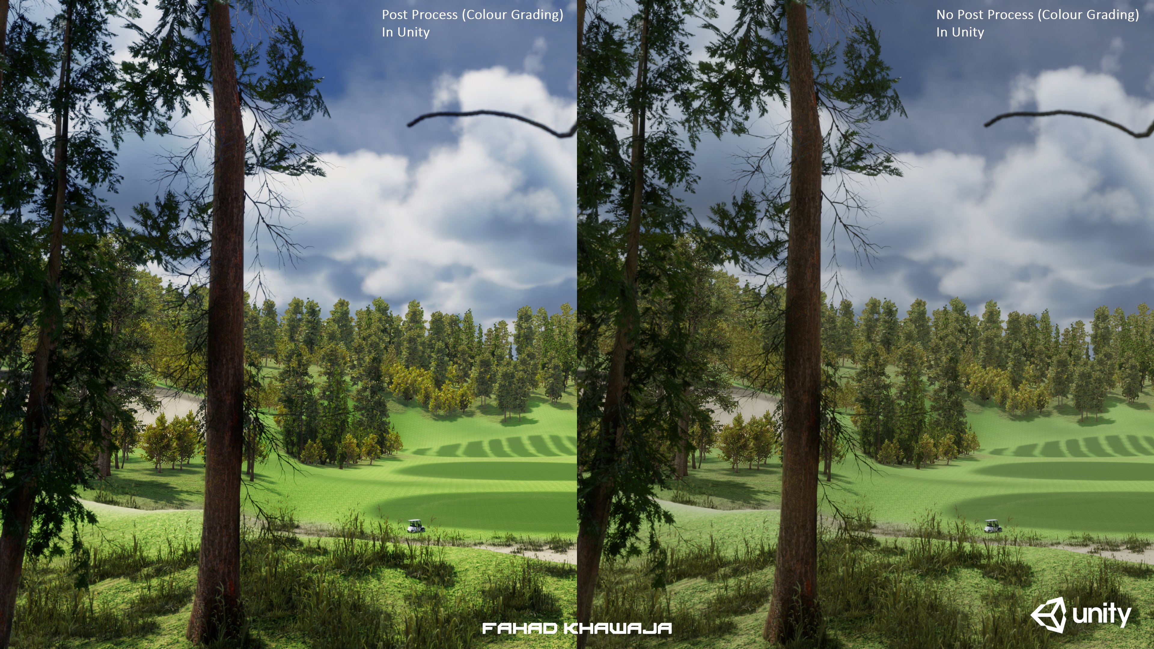 Hey all, made a fictional golf course environment to test new features of Unity HDRP terrain and lighting. Whole environment from blockout to final is done in 18 hours, used Unity Essentials and free assets. Most time spent on Unity forums figuring out warnings and errors related to terrain, hdrp shaders and art directing volumetric clouds. Sculpted and painted the terrain inside Unity instead of using external heightmaps. No raytracing is used as I wanted it to be optimised for games. Overall really enjoyed working on this, Unity has improved terrain a lot compared to older versions where I had to use custom plugins and script to make landscape environments for racing games. There are few rough edges in this environment but I had to stop otherwise there are no limits on perfection. Used physical camera and exposure settings. Baked reflections on water instead of realtime for performance. Terrain Stamps: https://assetstore.unity.com/packages/tools/terrain/stampit-collection-free-examples-218286 Golf Cart Model: https://sketchfab.com/3d-models/club-90-low-poly-model-5c3f4d1c558746808711eb84ec4b5731