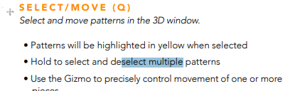 But no matter what I try, it doesn't work. Selection rectangle doesn't appear. I can only click on individual objects, and then control+click to add more objects to my selection. Or I can drag and select multiple patterns in 2d view.