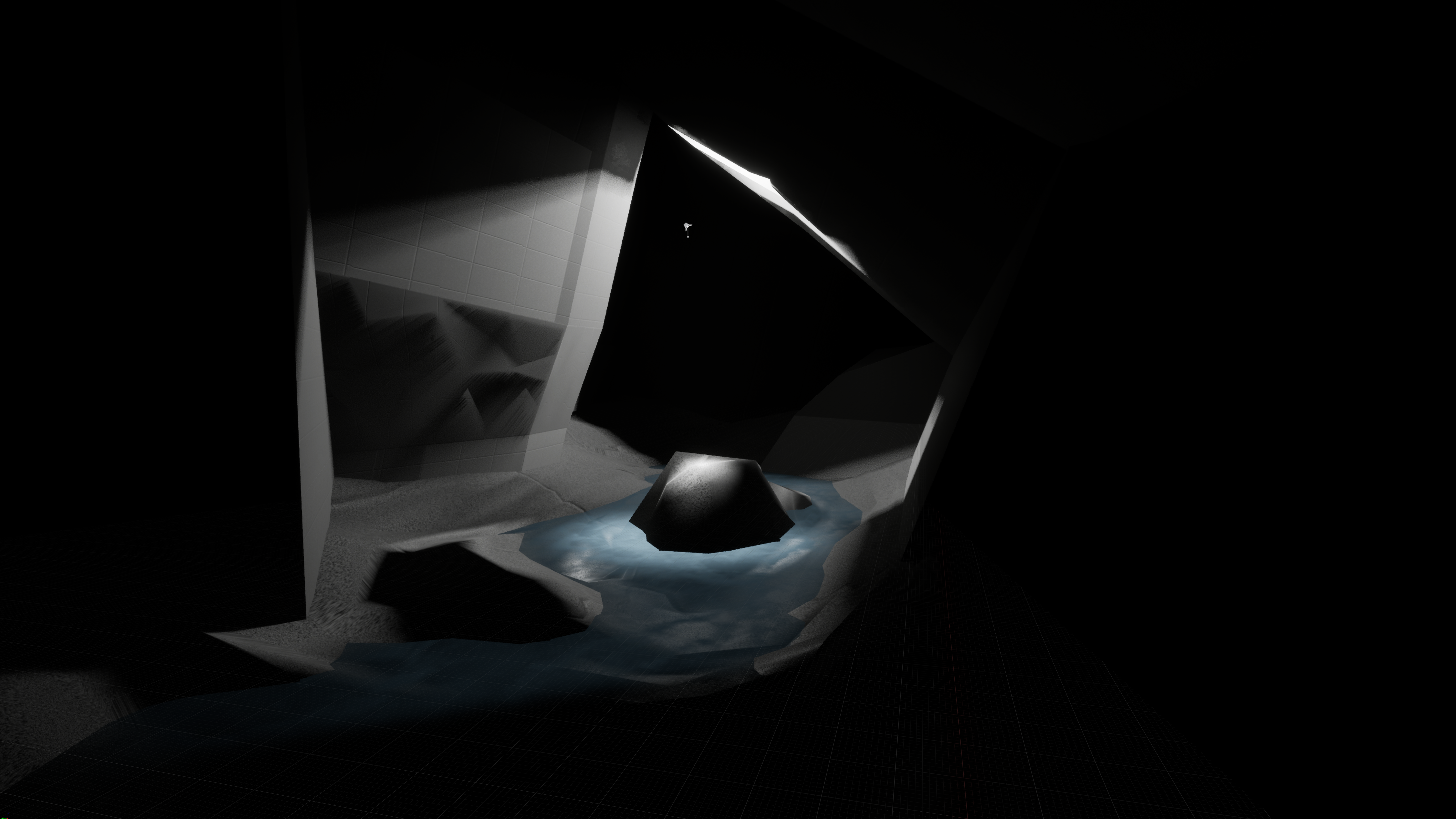 As for story, I've decided that the astronaut survived for a little while after the crash and just recently died, to show this I've made a makeshift communications station made of salvaged ship parts. The communications station is also where some of the lighting in the scene will come from as there is a torch (flashlight) mounted on it like a desk lamp. The desk lamp light will be lest bright so the player will be drawn towards the light coming from the ceiling first and then their eye should travel to the dead astronaut near the communications apparatus.