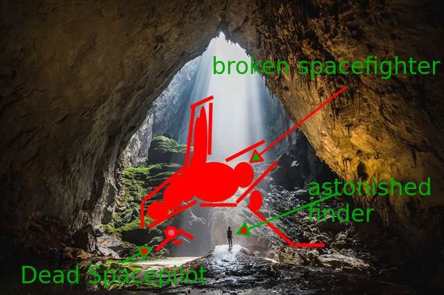 Properly some bad example because of the symmetry which might be nice for the natural view of the cave and also does not lead the viewers eyes to the deas pilot so i was by far to fast .. and also because of my disastrous sketching method.. so i did a little more..