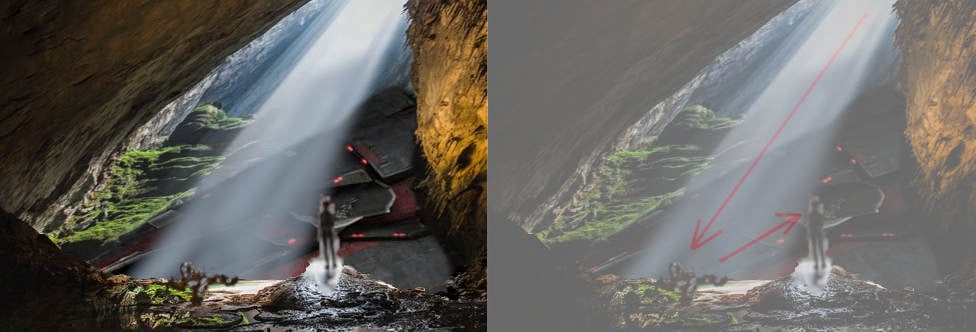 Properly some bad example because of the symmetry which might be nice for the natural view of the cave and also does not lead the viewers eyes to the deas pilot so i was by far to fast