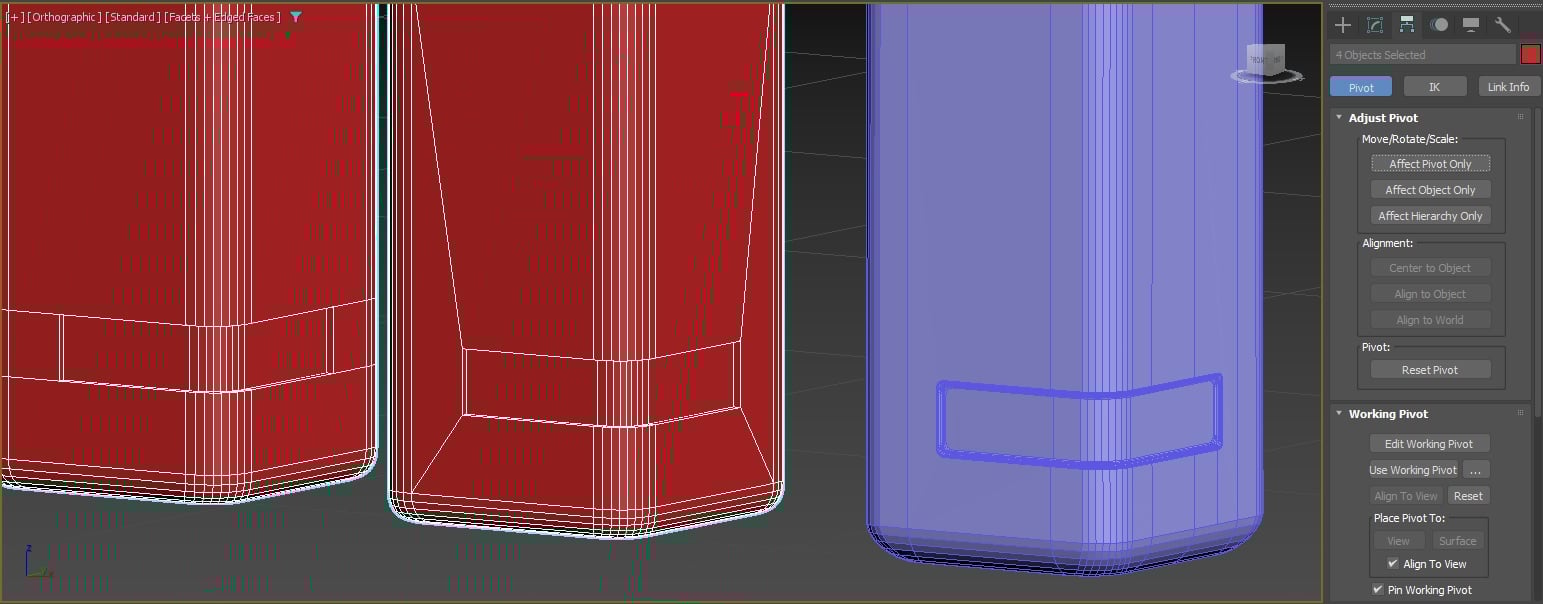 I modeled the red versions on the left using inset and chamfer in max, but I can't figure out how the blue one on the right made the deboss area without any apparent inset lines. Also, I found out that the blue one recession could have more rounded corners because they aren't limited by any inset lines.