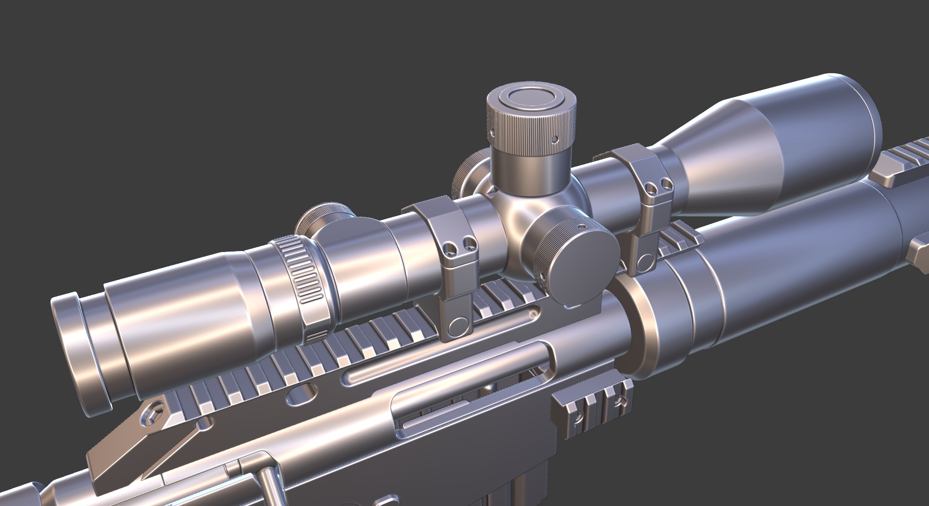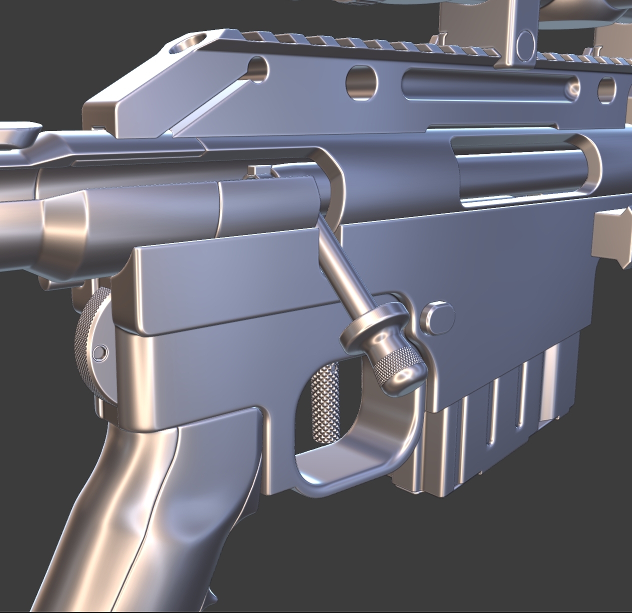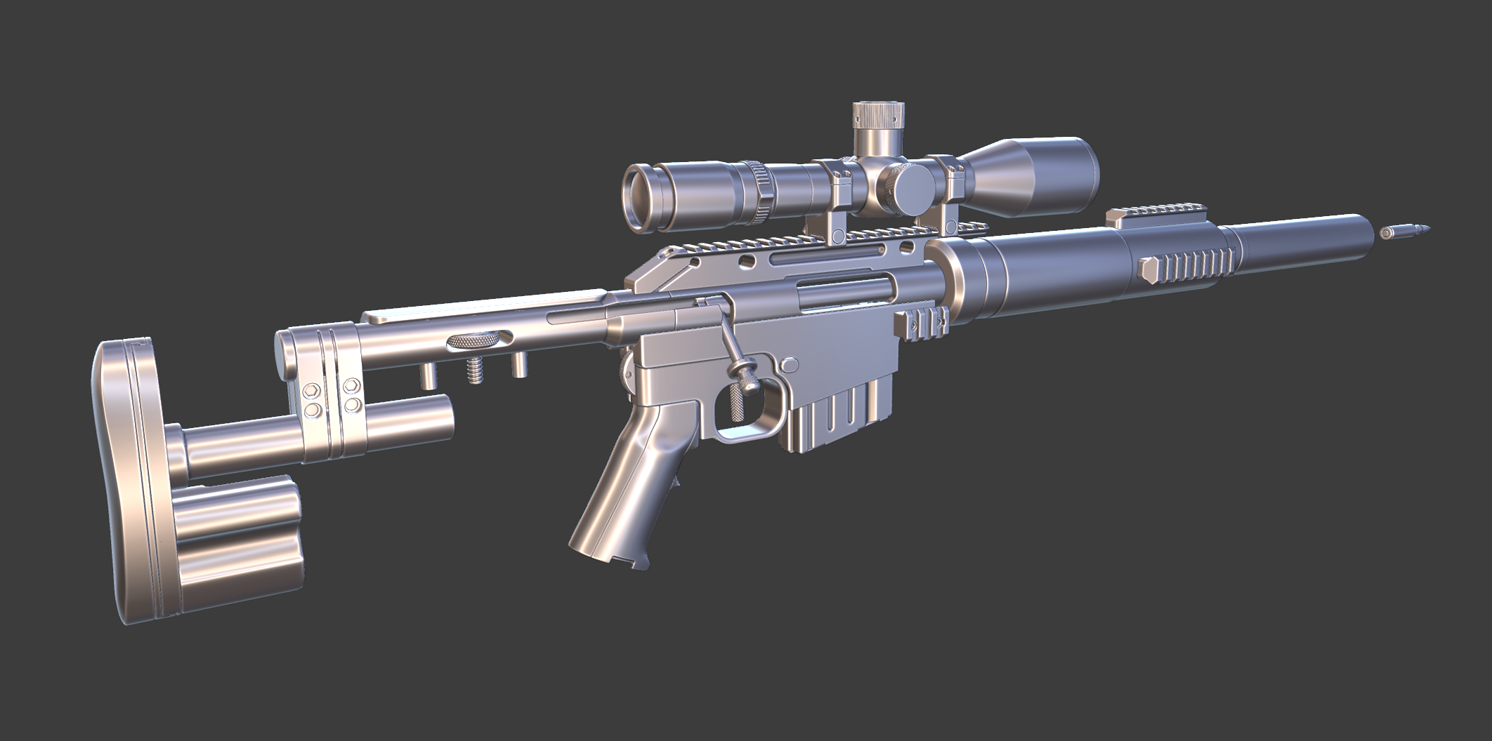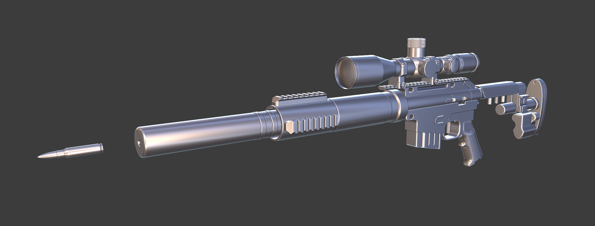 I decided to cut out making the bipod for the weapon to save on time. I also want to render the weapon in Unreal and with that, also create a camo skin system with the material layering system in that game engine. In my head, I imagine it working and looking like the skin system in Counter-Strike but it will depend on how I go about it with the blueprints. As I've already made a modern weapon in black material, I felt like I need to make something different with this project to make it stand out from being just another weapon art piece. Since this sniper rifle has variants to it in its parts, I also wish to model those other variants so I can make a system in Unreal that can switch out differents parts like attachments in a game.