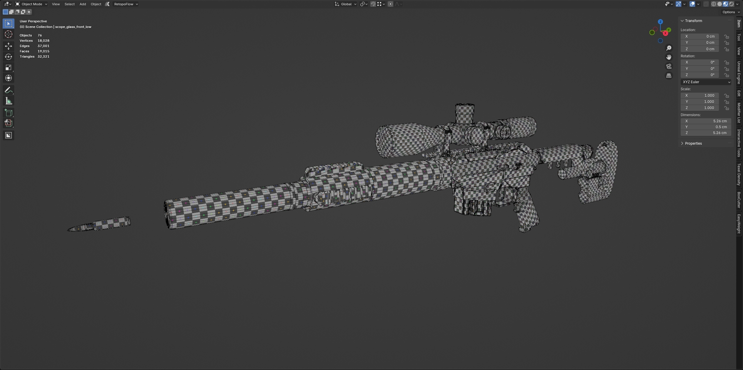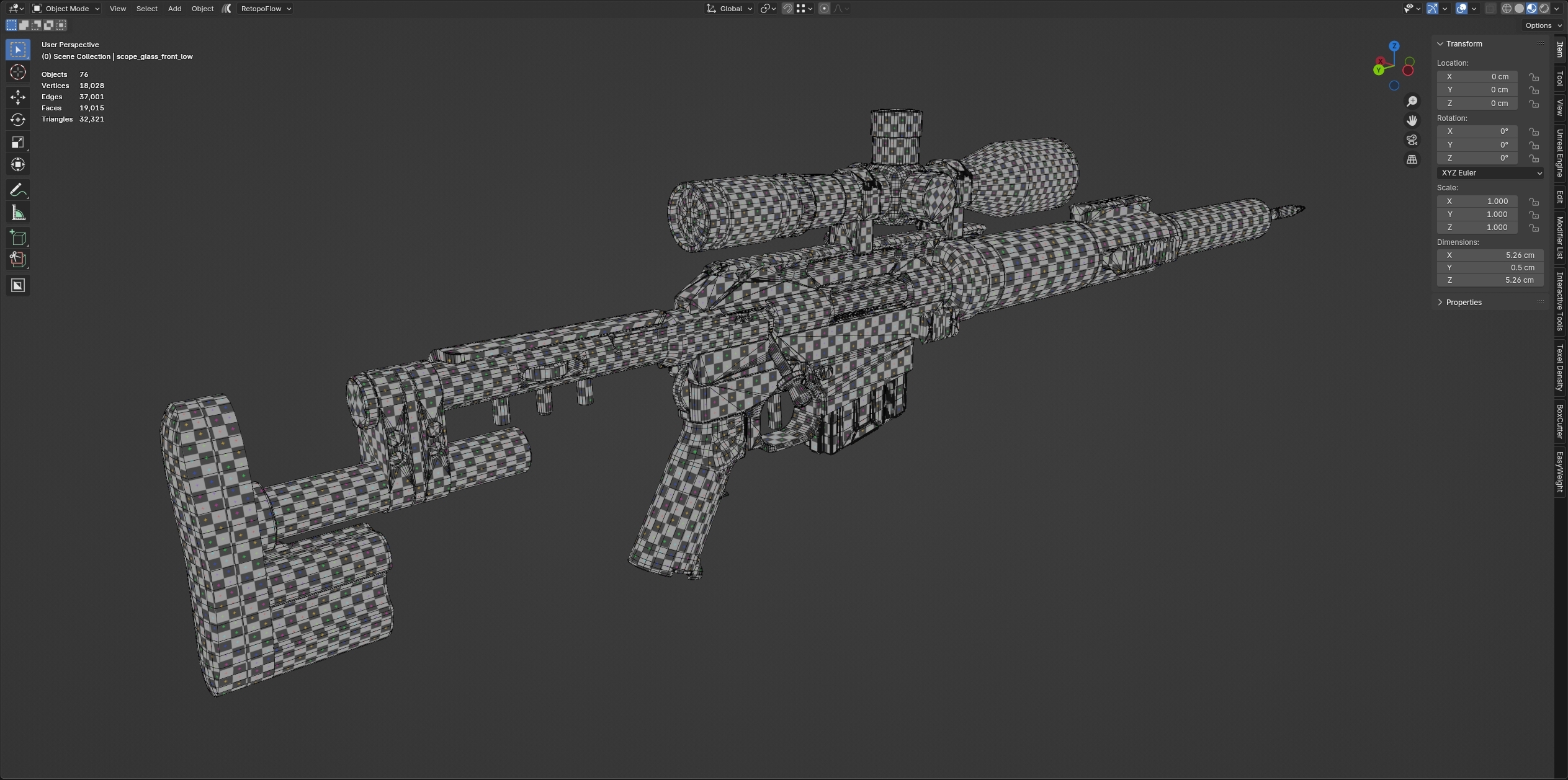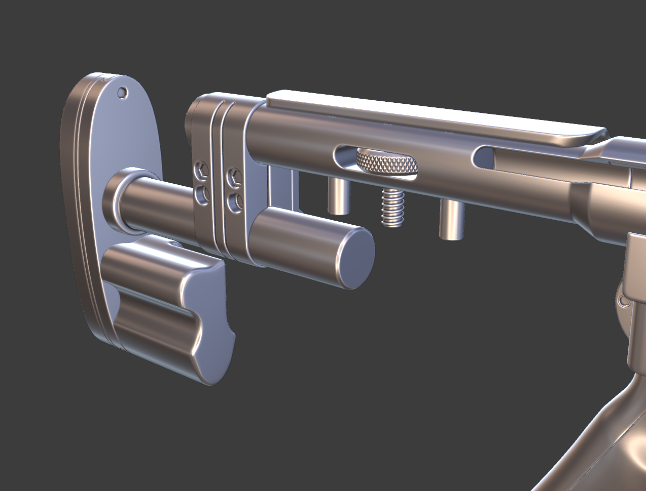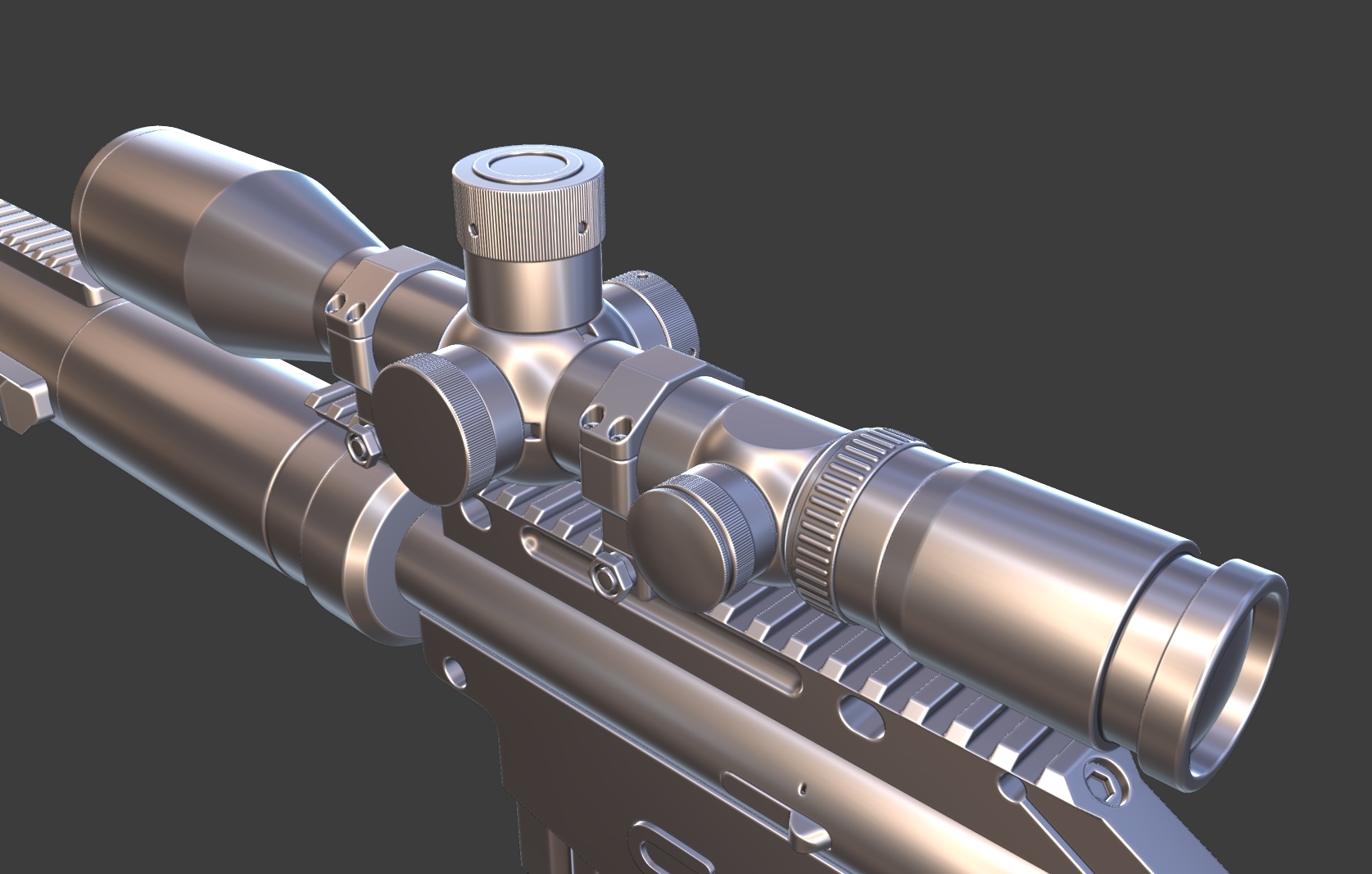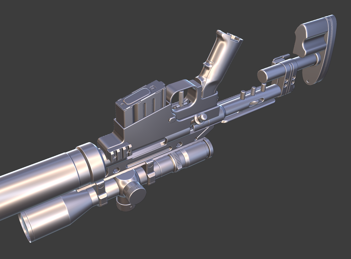 I decided to cut out making the bipod for the weapon to save on time. I also want to render the weapon in Unreal and with that, also create a camo skin system with the material layering system in that game engine. In my head, I imagine it working and looking like the skin system in Counter-Strike but it will depend on how I go about it with the blueprints. As I've already made a modern weapon in black material, I felt like I need to make something different with this project to make it stand out from being just another weapon art piece. Since this sniper rifle has variants to it in its parts, I also wish to model those other variants so I can make a system in Unreal that can switch out differents parts like attachments in a game.