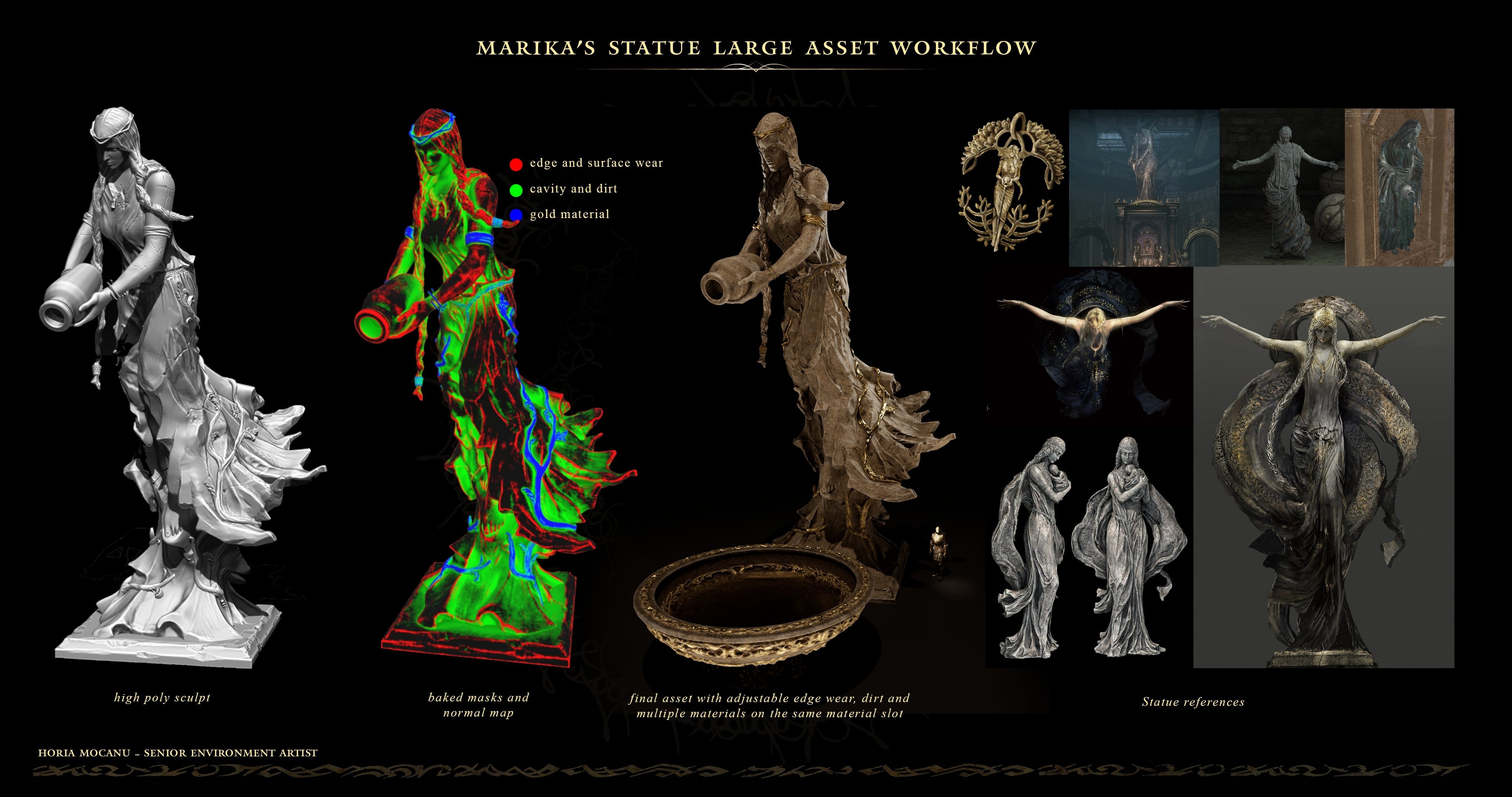 The Foliage and the one pile of dirt I used everywhere are Megascans. The Sky is by Velarion and our tarnished warrior is by TalkingDrums.