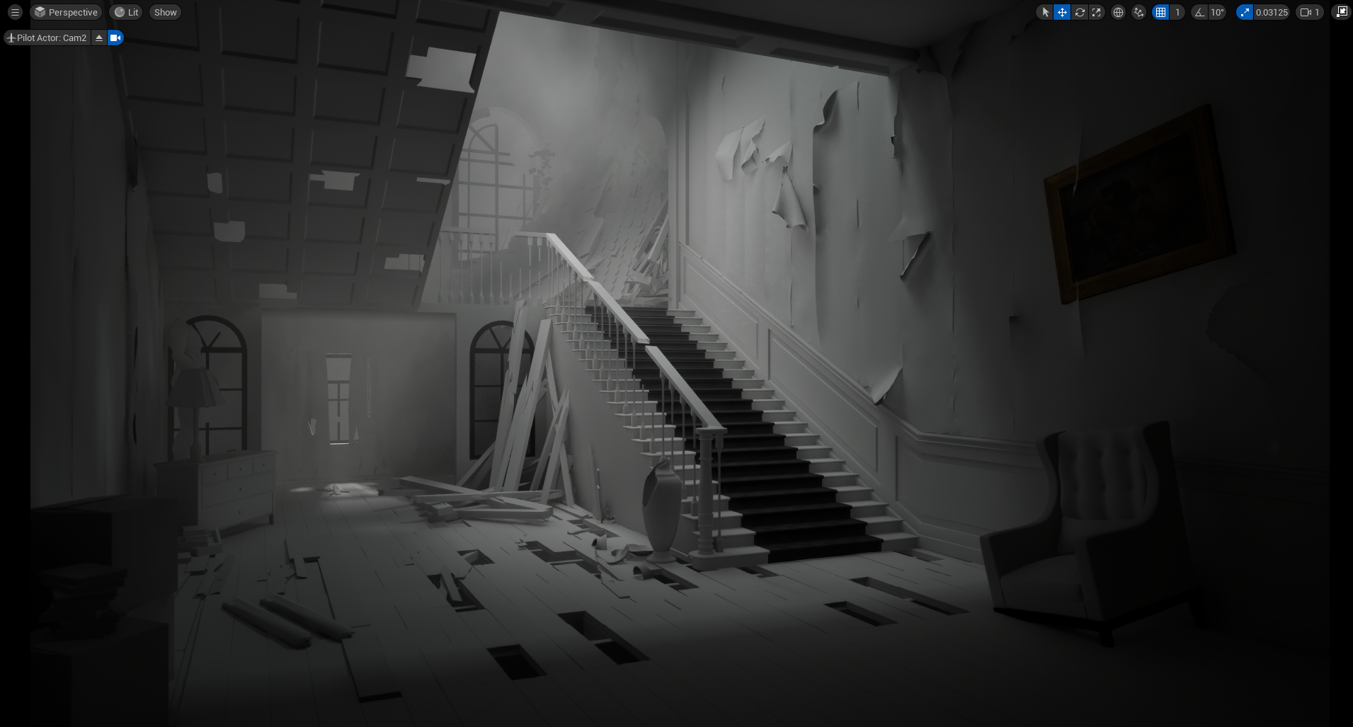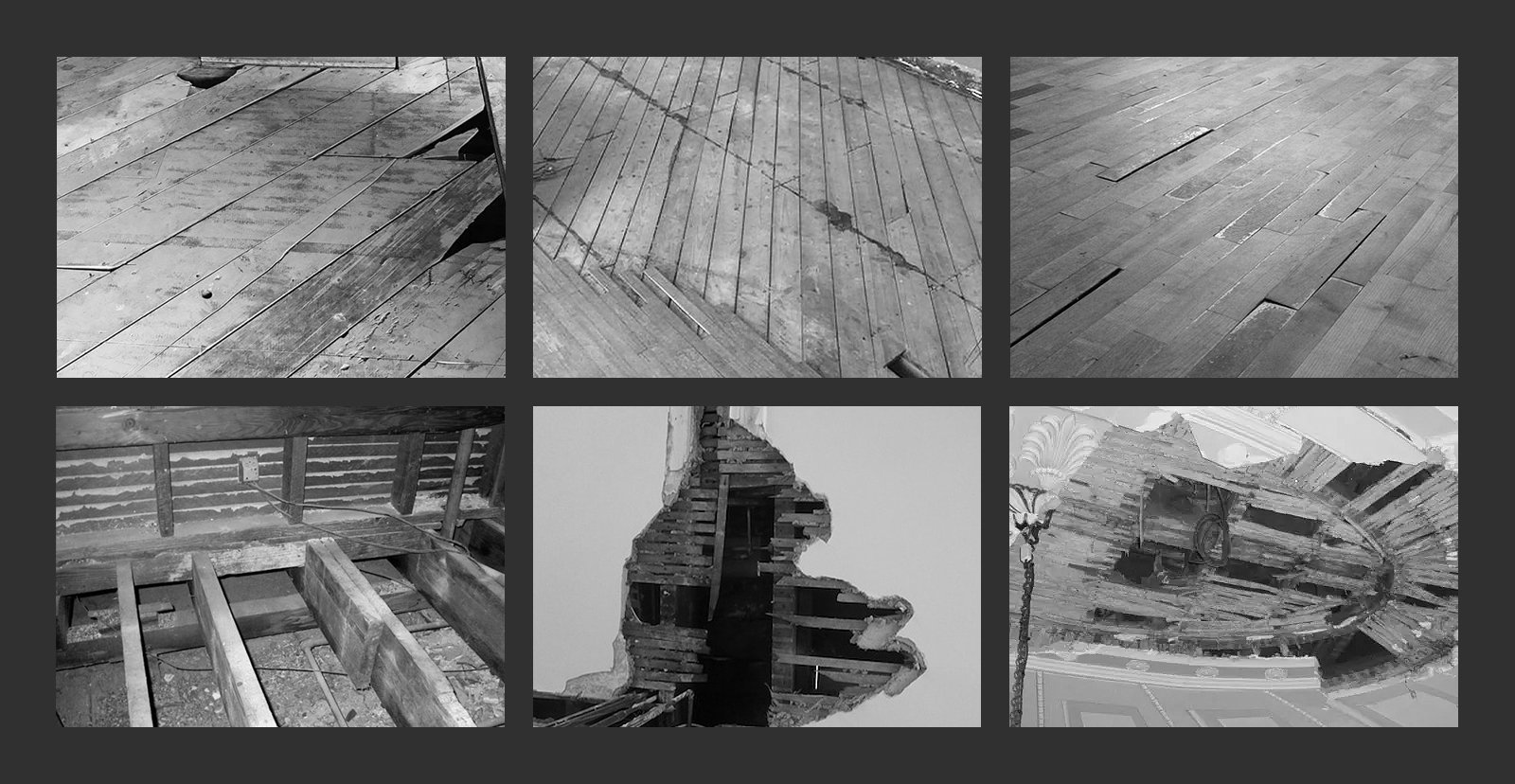 A lot of the debris on the floor in the concept looks like it may have come from the ceiling, since most of the floor boards are still in place. The visible lines between the individual floor boards is more representative of wood movement from cupping and crowning due to water damage.