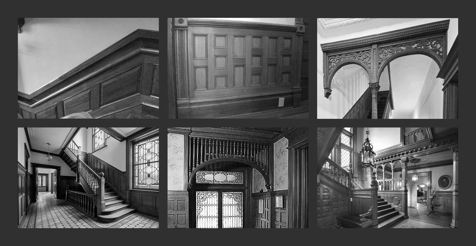 All of the stiles and rails on the trim work should also line up with the adjacent structural elements in the staircase and walls. The more detailed panel sections can simply die off into wide trim that provides visual separation between the weighty wood structures and the open fields of uninterrupted plaster that acts as a natural visual rest.