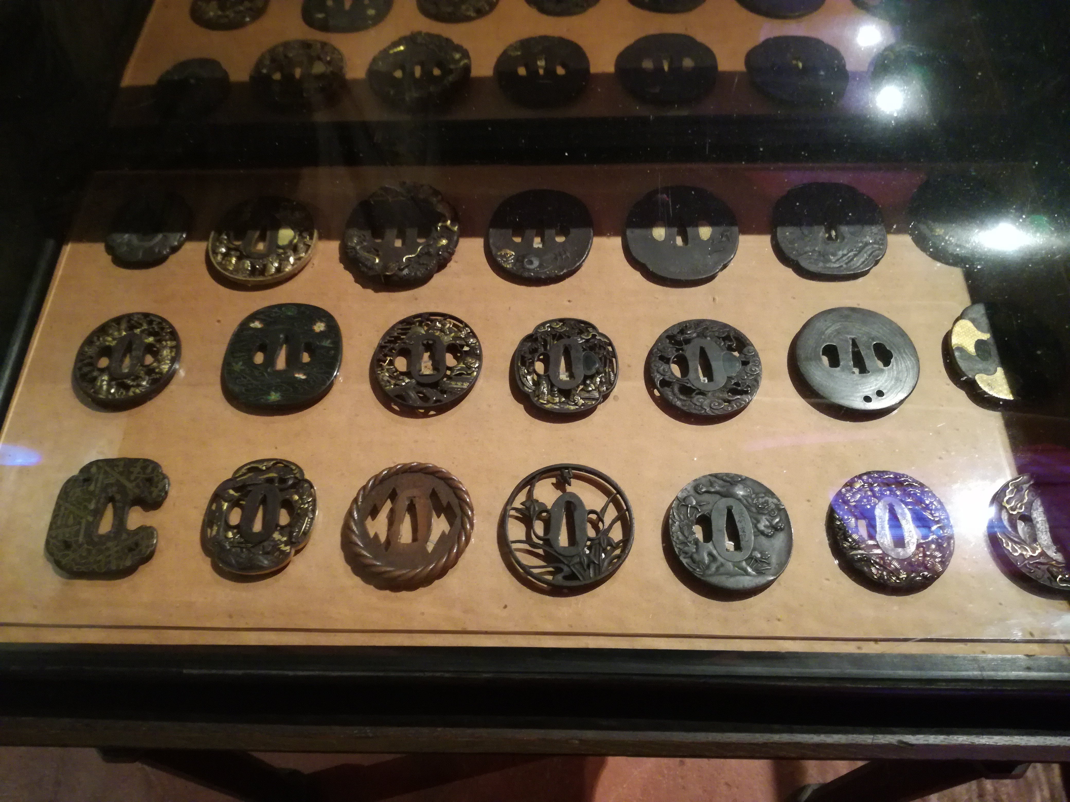 I think I have some japanese references I took at the Stibbert lying around. The circular discs are guards. Now that I think about it, maybe make the shield boss more asian. Less damage, too, forged steel is hard. The damage sustained makes me think of 18 gauge soft hot-rolled mild steel with no planishing