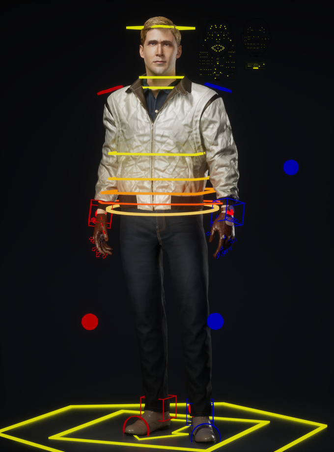 3. Rotations were weird. I encountered this for the fingers mainly, where if I rotated it along its axis to bend the fingers during posing, it would elongate- as if the joint of the rig was not properly positioned at the joint of the fingers itself. However, I thoroughly ensured that I had correct placement during the Accurig process. With me trying to avoid rig edits for point 2, I couldn't do anything about it, and settled for positioning fingers manually during posing for shots. It only really affected my posing, it didn't seem like an issue during GASP gameplay.