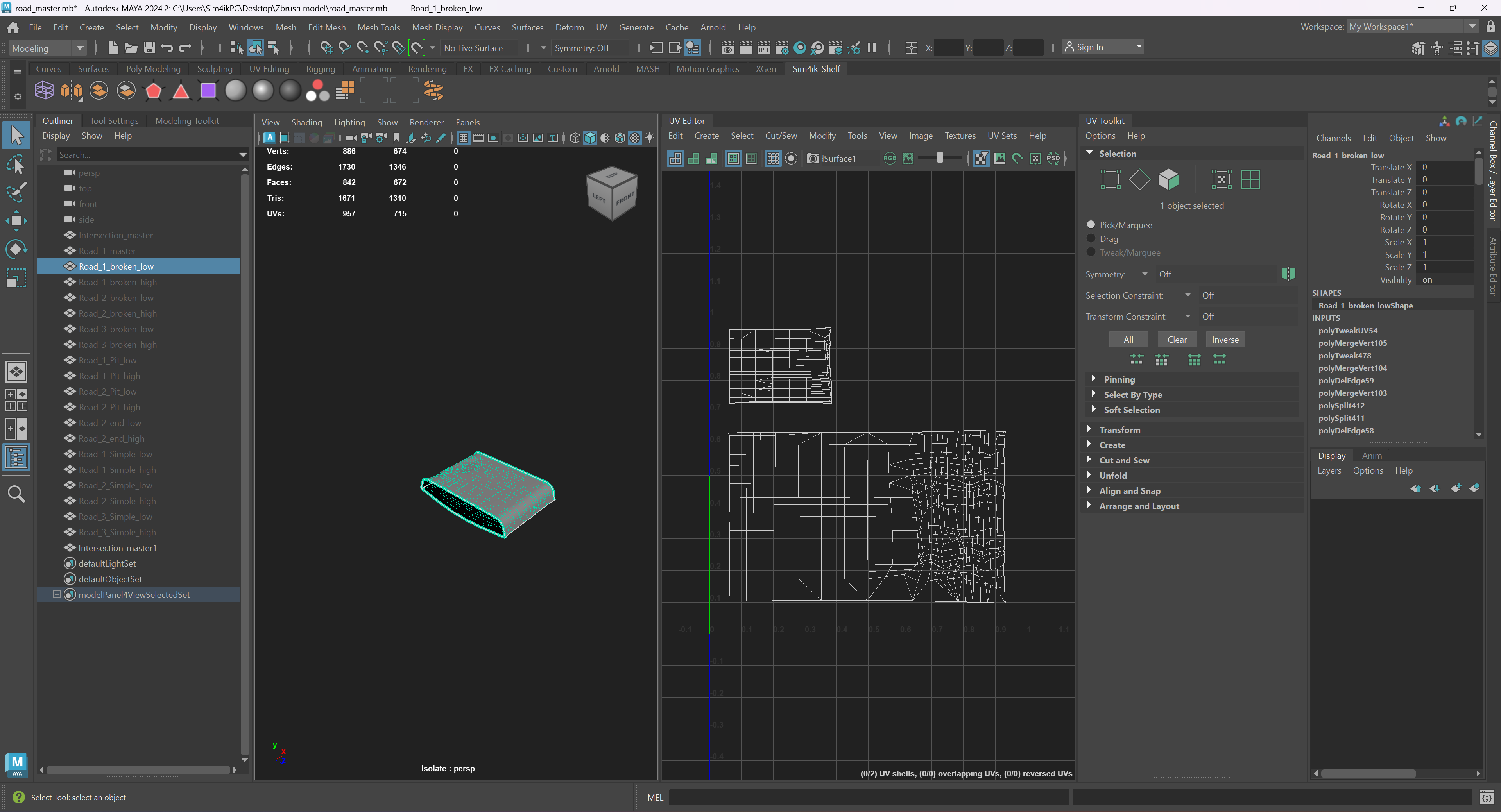 6. Corrected the UVs if necessary (Some roads change more in shape and differ more from the base low poly model)