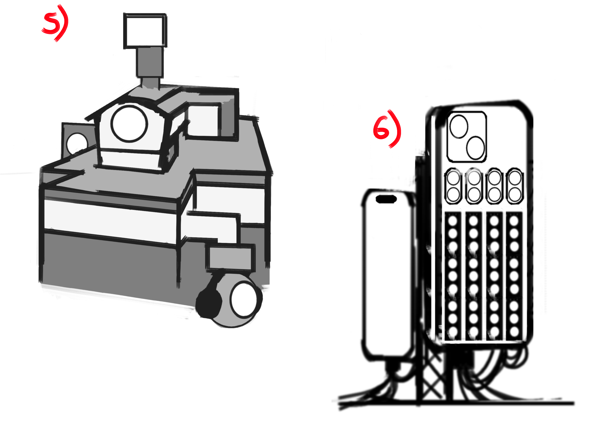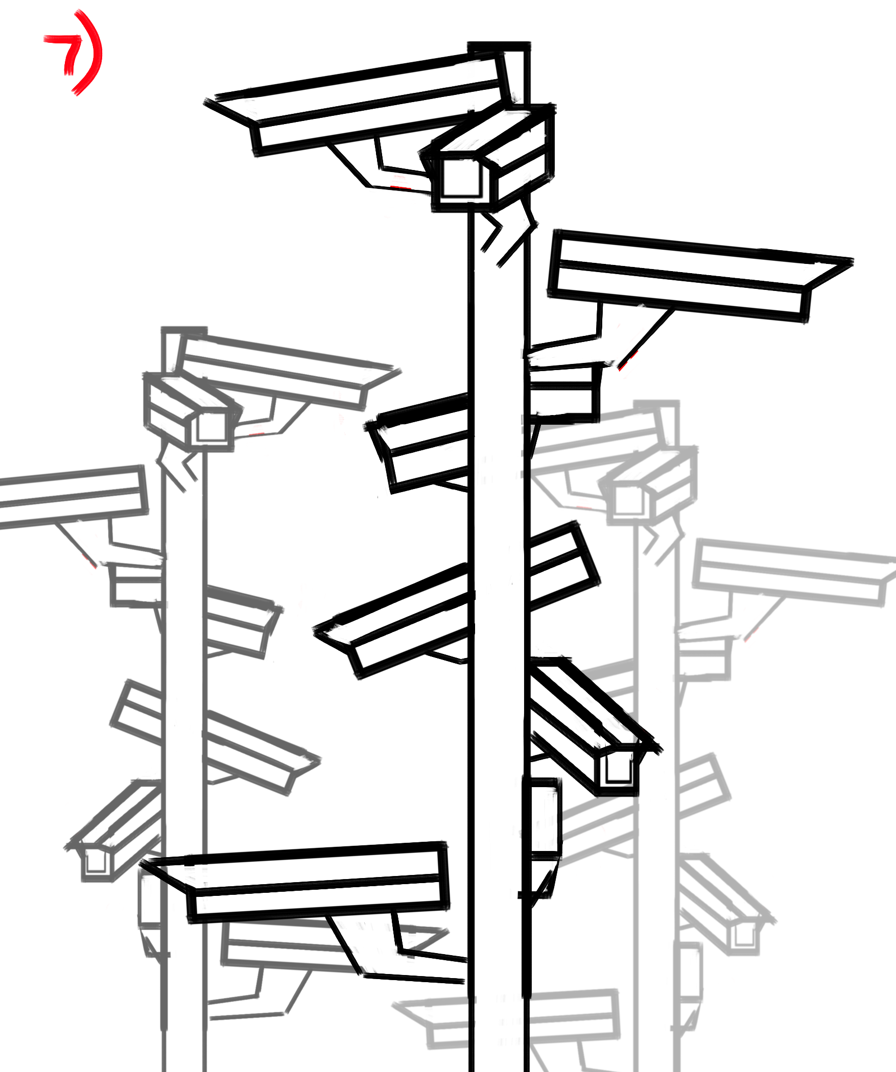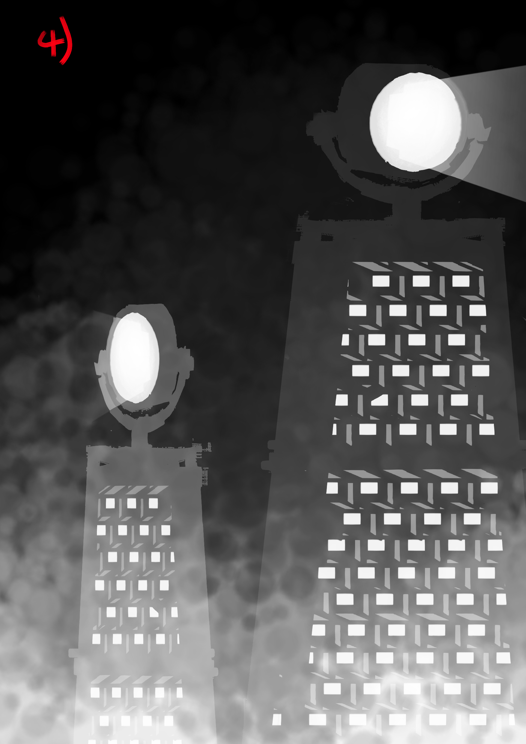 4) Apartments designed like surveillance cameras, large searchlights mounted high
