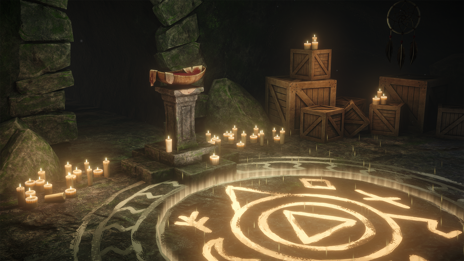 I’ve been working on a small real-time environment inspired by a gothic/occult cave setting, and I’d love some external feedback.