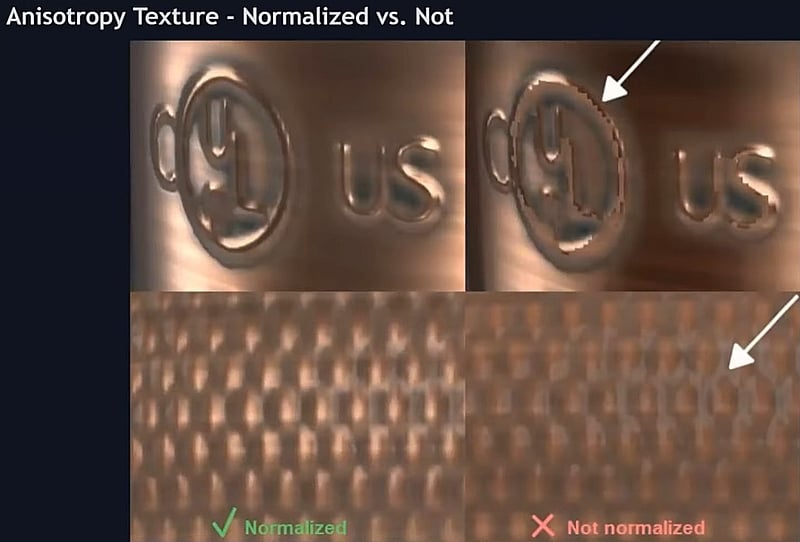 I did a webinar about how to make Iridescence and Anisotropy using glTF, and shared a bit about normalizing textures, you can