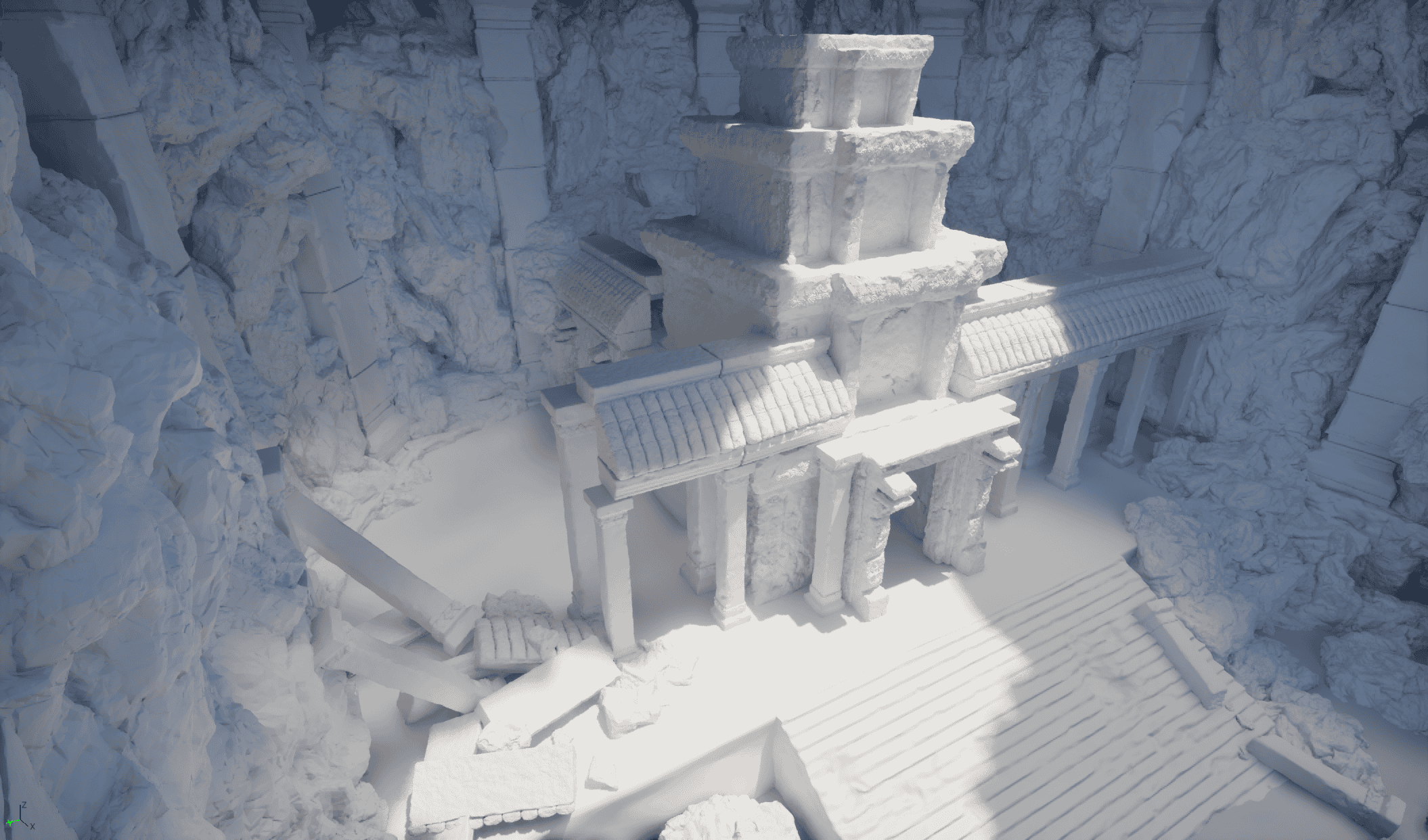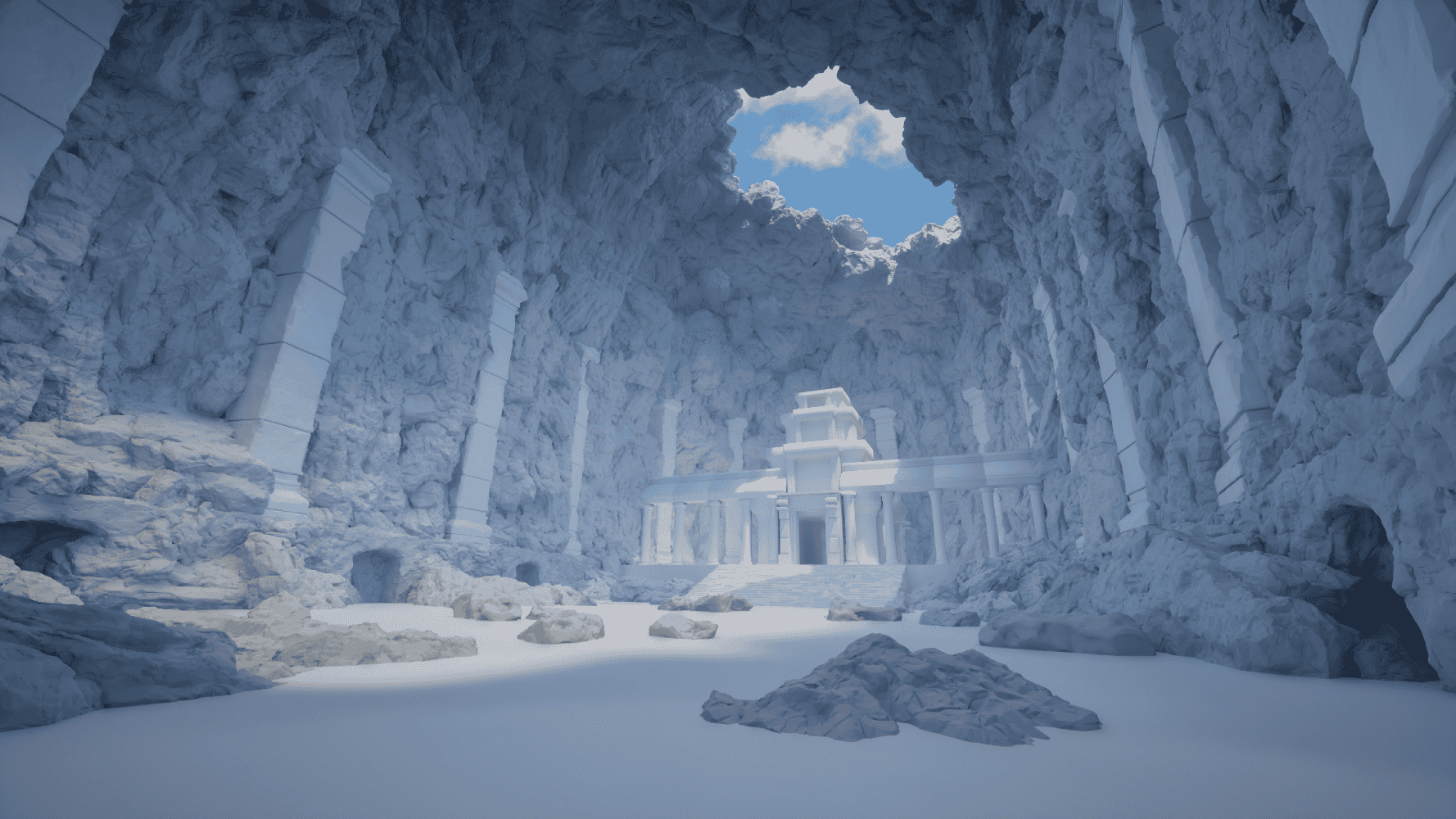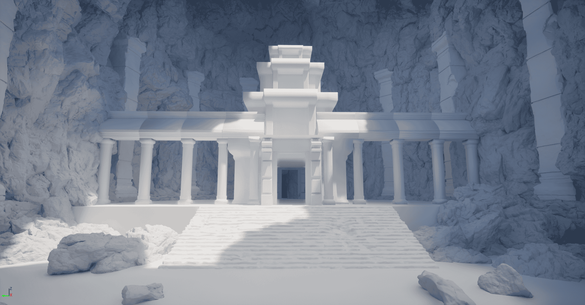 After deciding on a temple building hero asset, I enlarged the cave area in height to increase the sense of scale to make it more