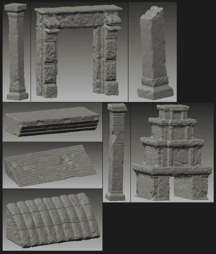 I've taken a modular approach to try and get the most out of the least amount of models. My next section of progress will be focusing on sculpting my temple models to very high detail. Once all of the sculpting and decimating has been completed, then I will move onto UV unwrapping the low-poly before baking.