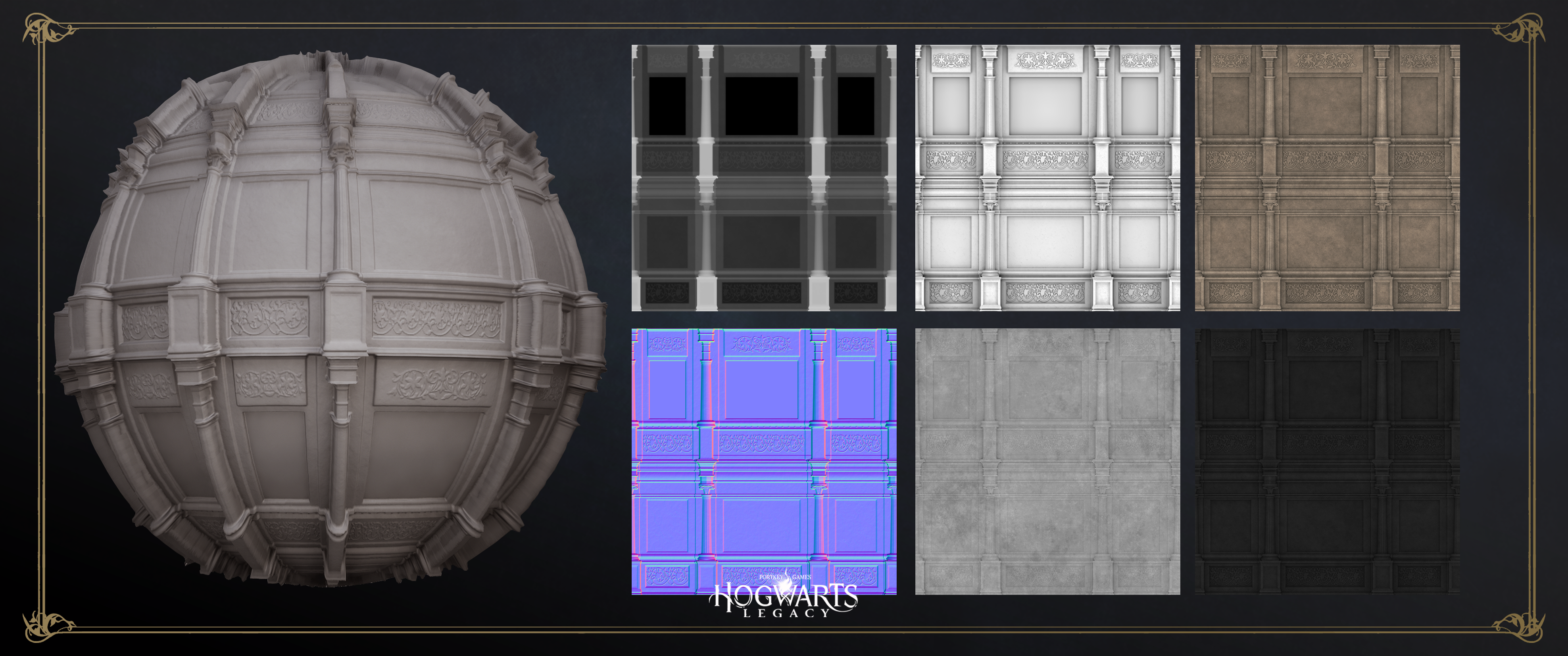 Rather than creating a purely technical scene, the materials were placed within an environment designed to support storytelling and atmosphere, with lighting and composition inspired by the academic and magical feel of Hogwarts interiors.
