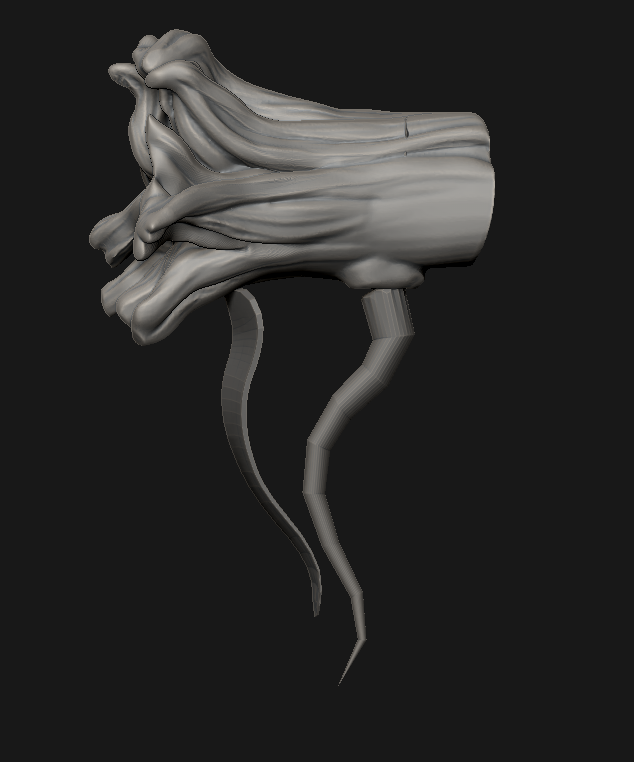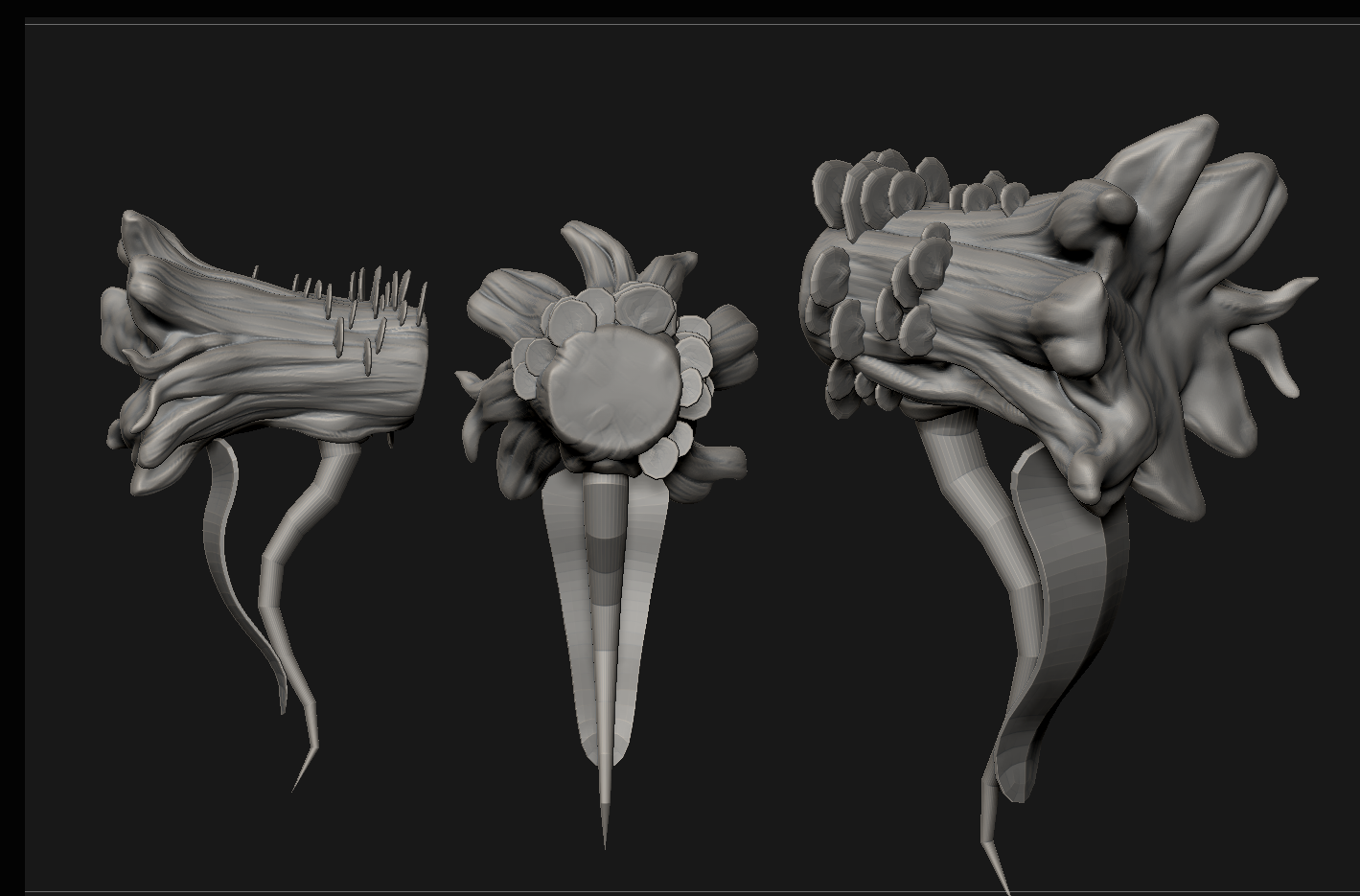i think i'm reaching a point of what i would call "sloppy sculpting", i've watched a few monster concept artists sculpting and they kinda don't mind the stroke, like, they don't give more importance to it than it deserves, a thing that i've experienced and seen is that a lot of new sculptors think too much before doing a stroke worrying that this next stroke my ruin they sculpt(it's kinda silly to read this in retrospective) but it really happens, i think it might be the same thing in the brain that freeze people to act in some other situations but isn't the point here.