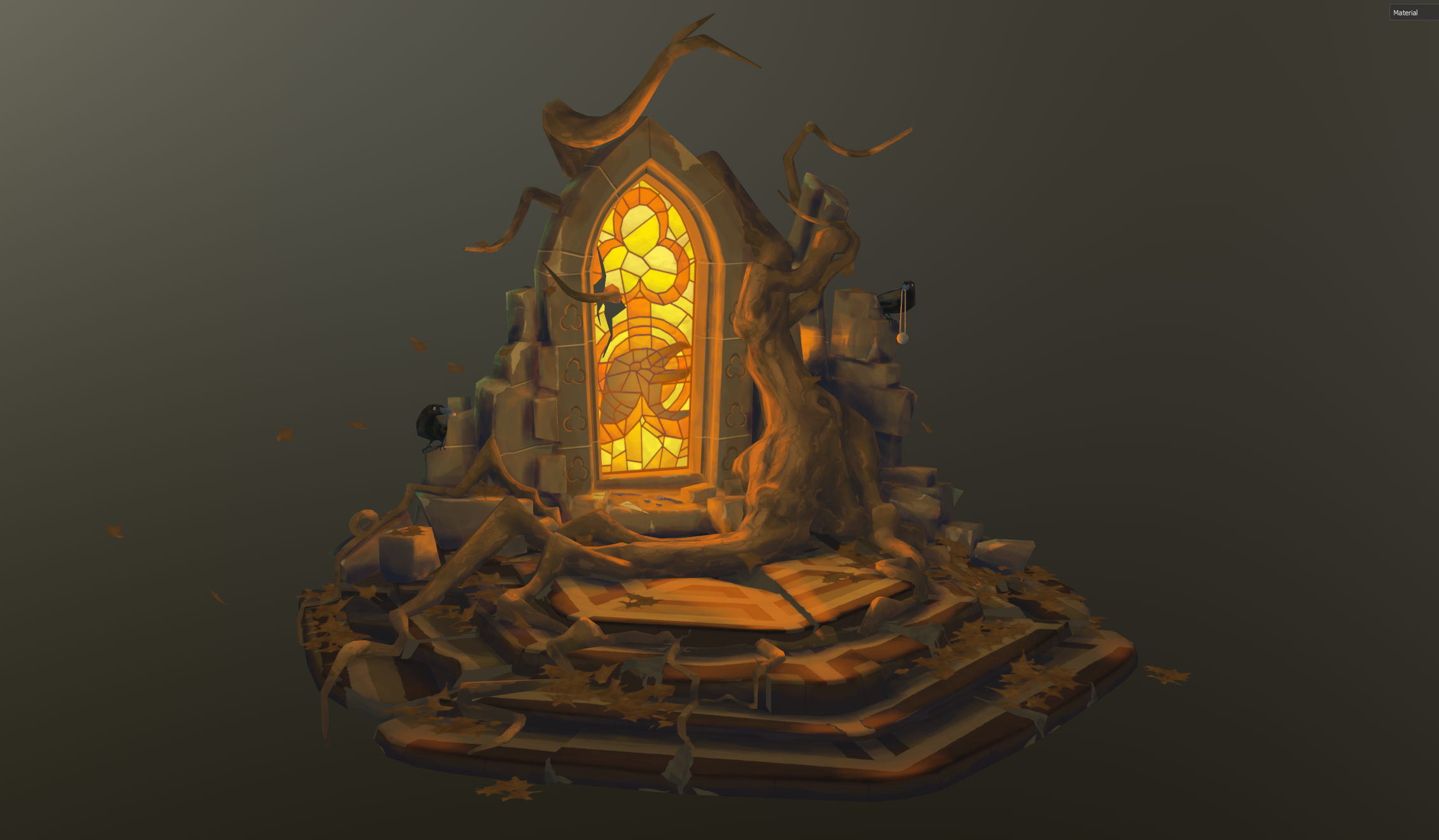 It's kind of a weird concept, as it's a ruin, so where is the bright light coming from? It's shining in from the window, but the walls are demolished, so bright light should be coming in from all around.... I don't know! I guess consider why the window is bright!