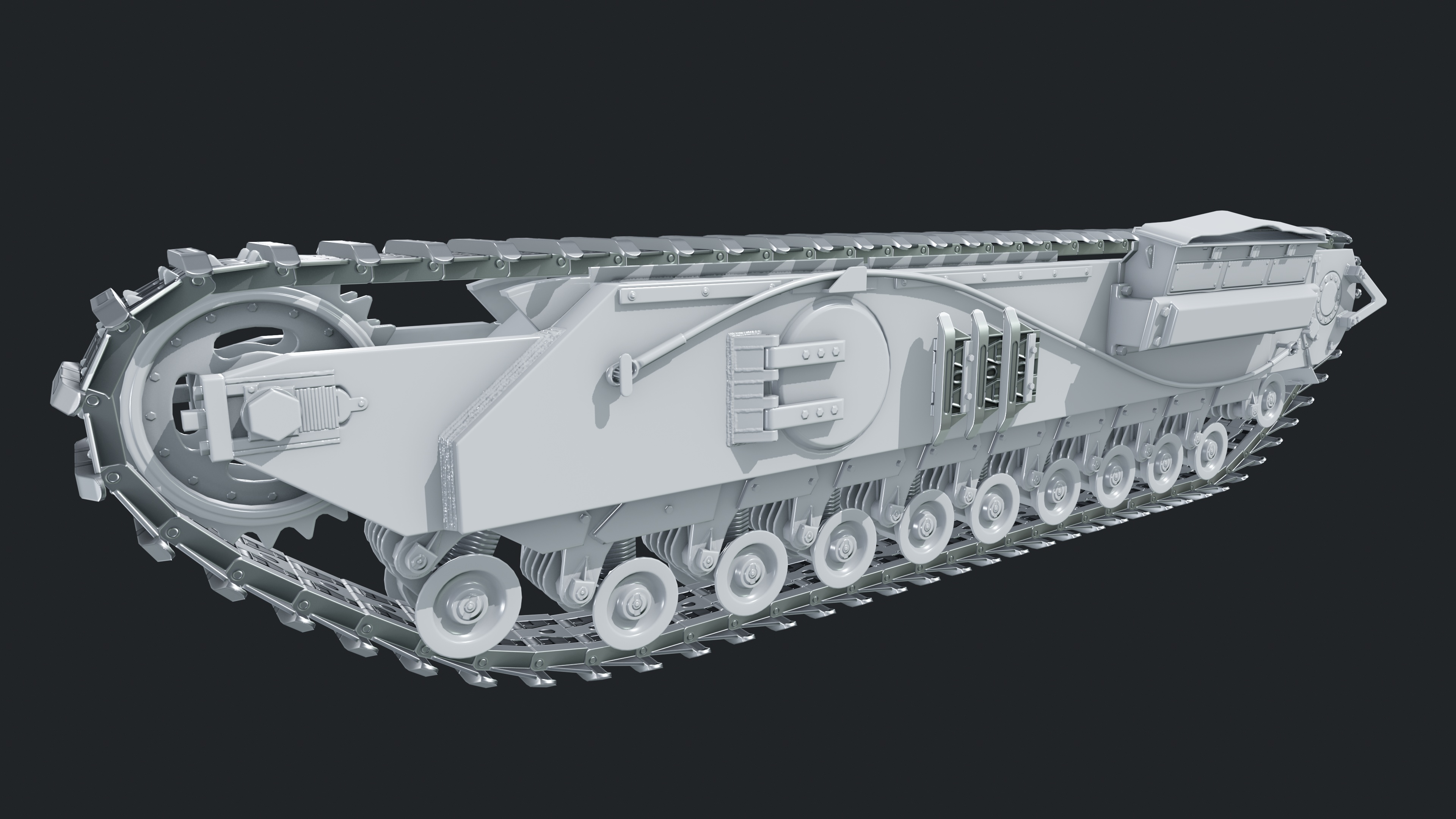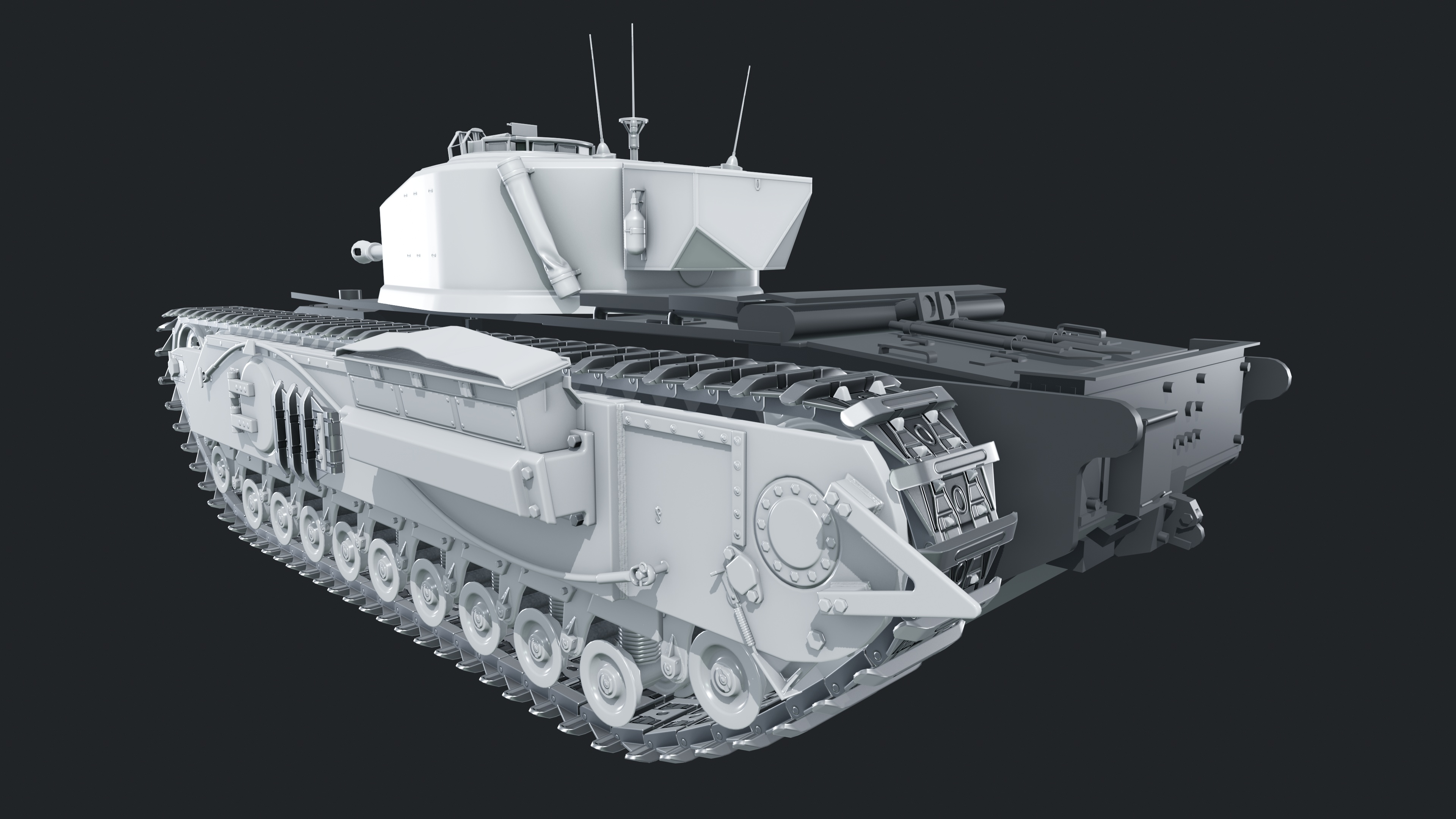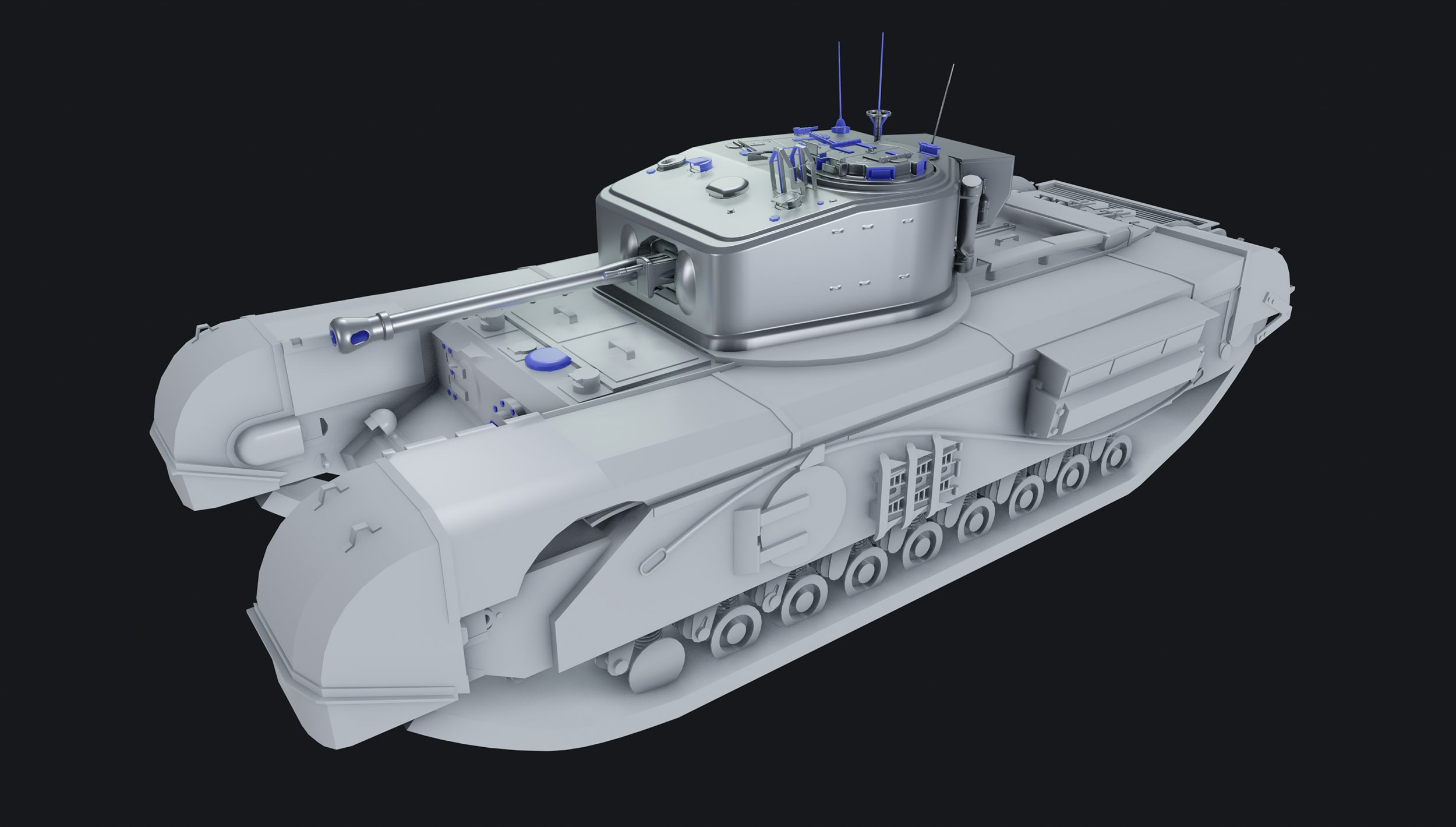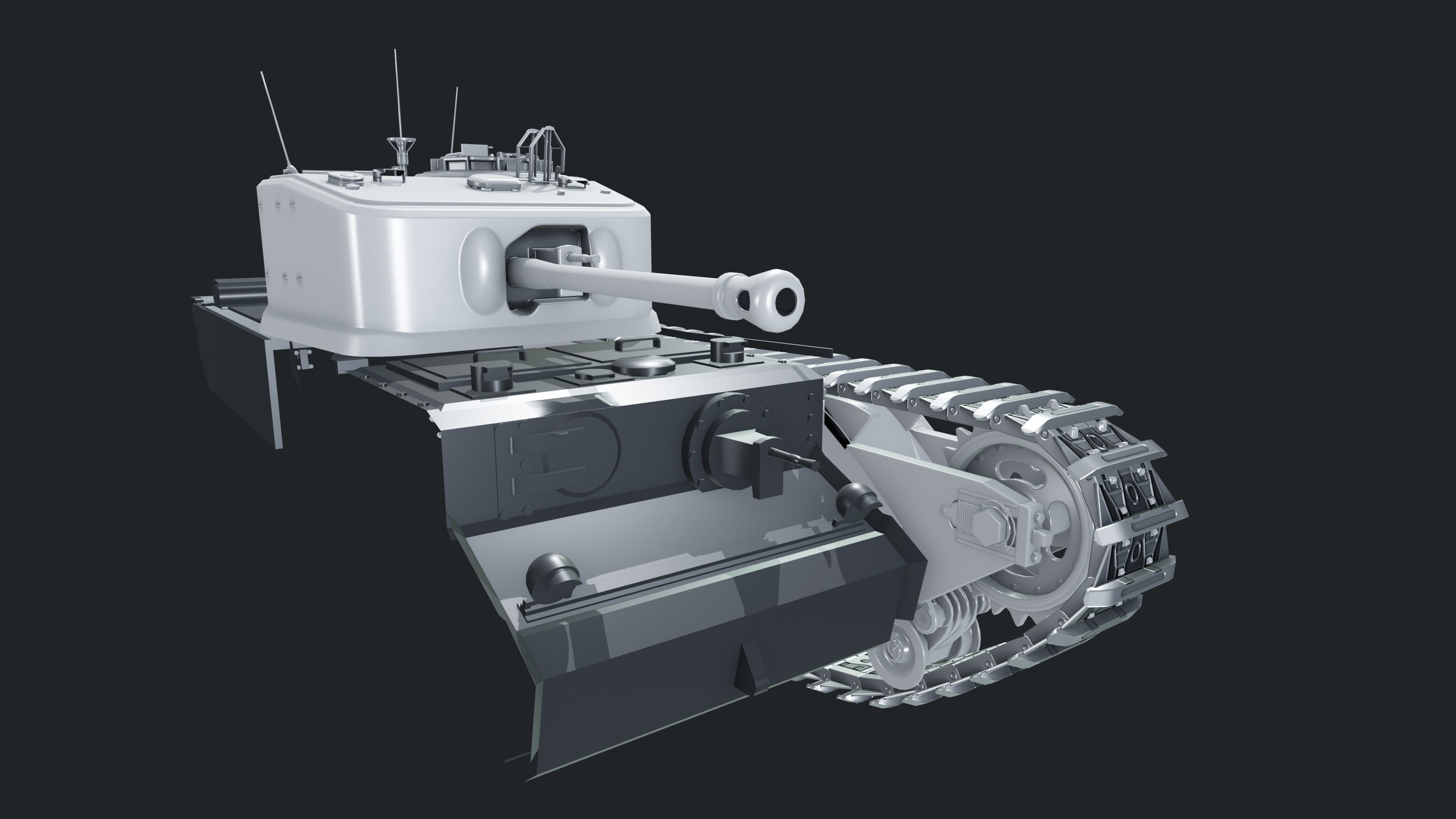 The turret was my old test task back in 2019. Unfortunately, it wasn’t successful, and I was quite frustrated that I didn't even get a single line of feedback on it. But time has passed, I looked at it again and decided that it wasn't that bad after all. After a couple of tweaks, maybe it is worth adding it to my portfolio, but this time as a complete model of a tank. That's why the turret already has both highpoly and lowpoly models now, as well as UV layout, while the hull is still at the blocking stage.