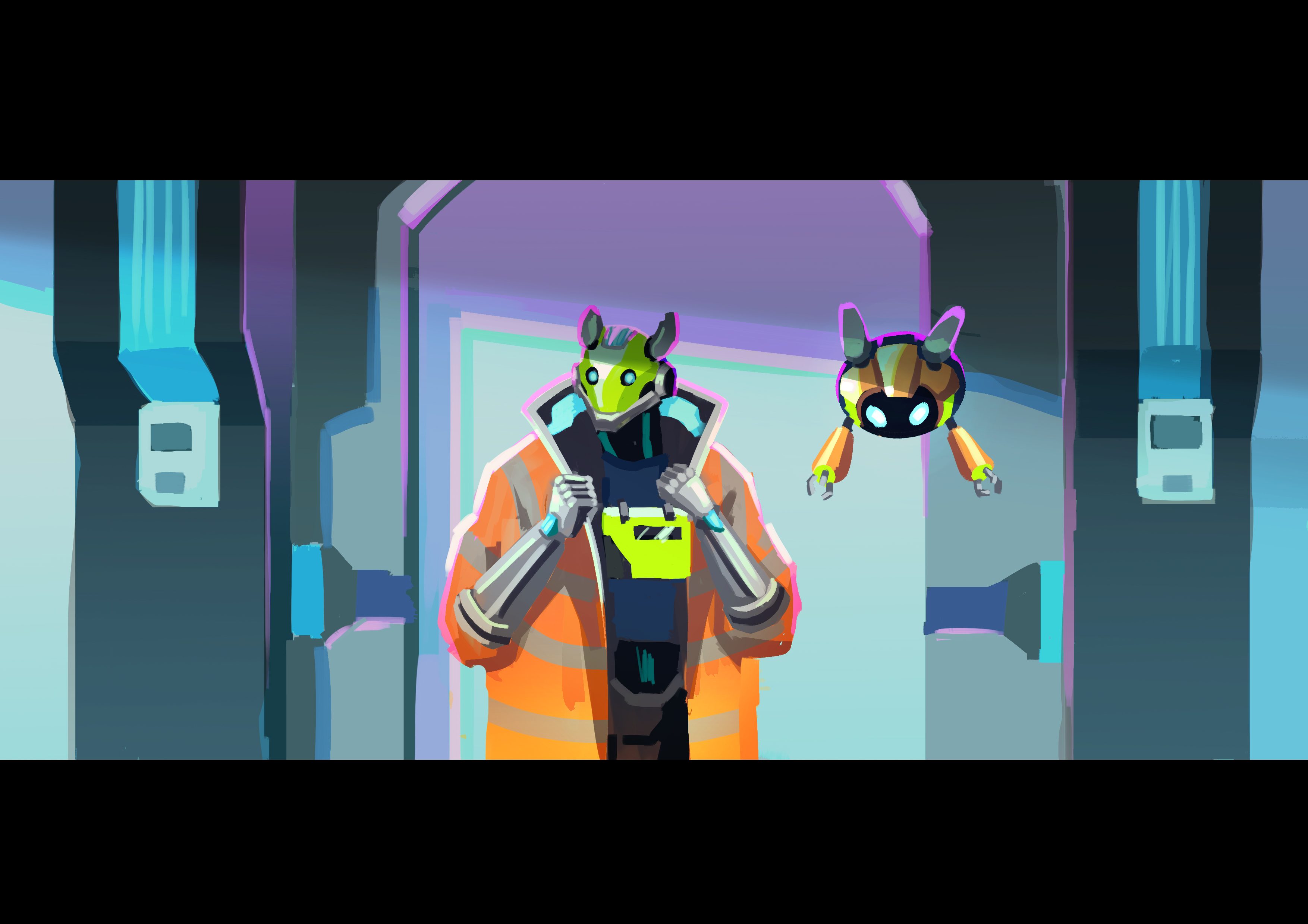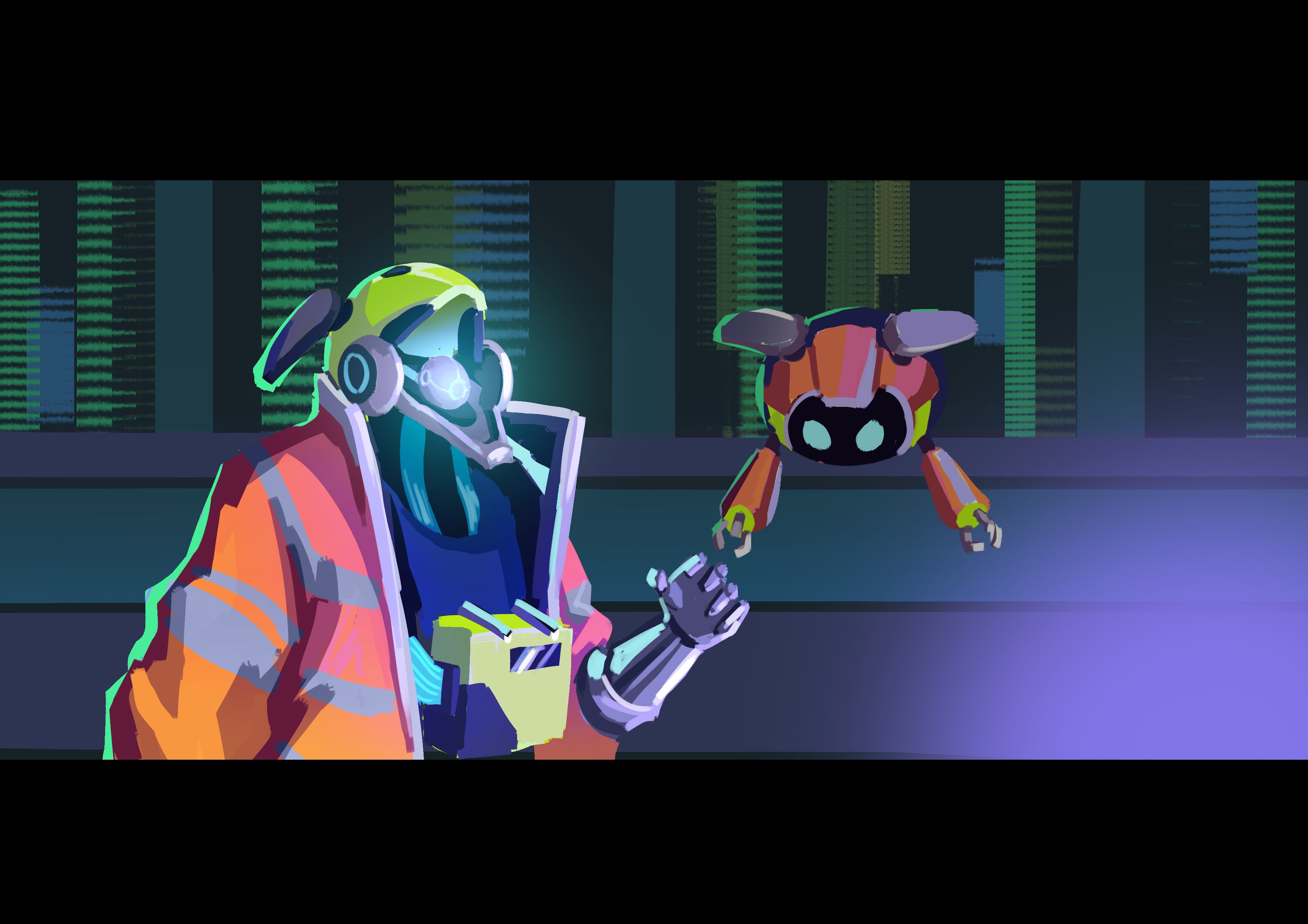 Shot 7, made the lighting darker to show more neon colours.