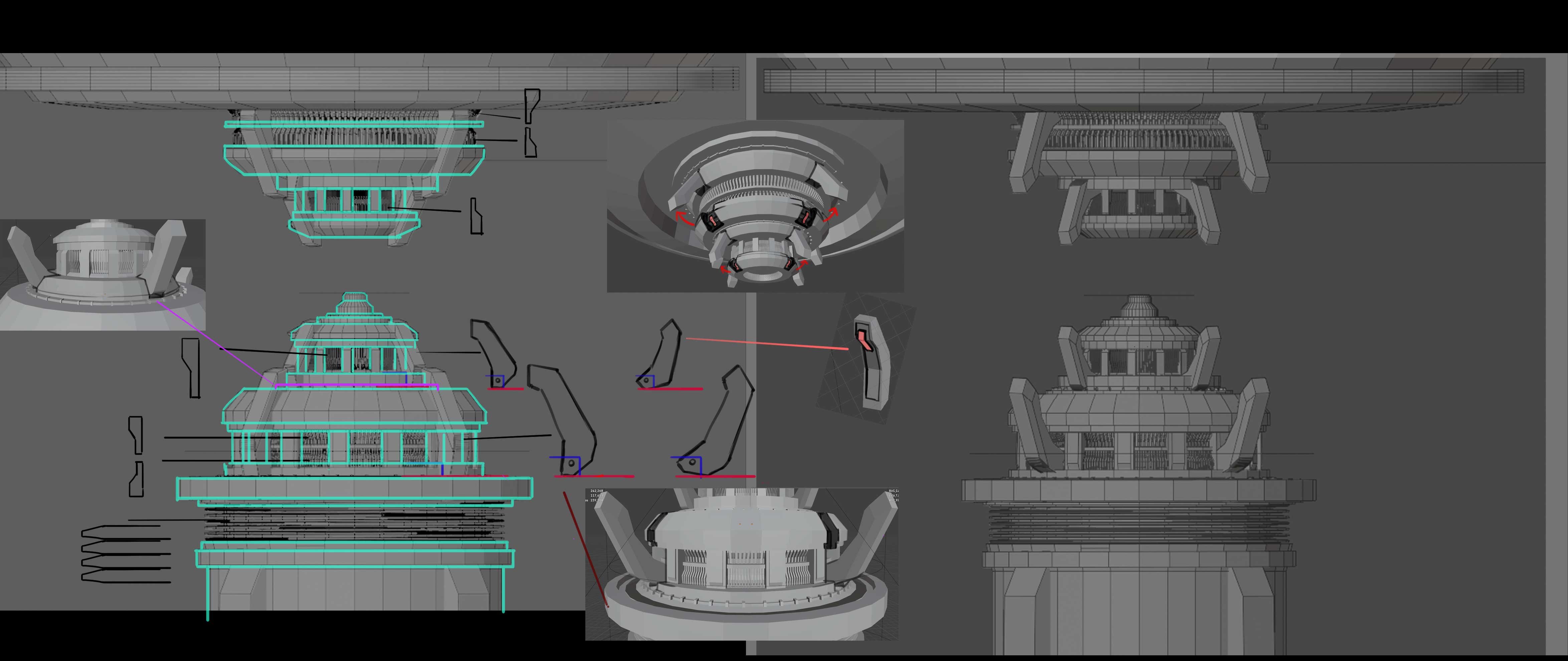 Shot 14a lighting and setdress, faked the red pink ring light using 3 planes with the same material in Unreal.