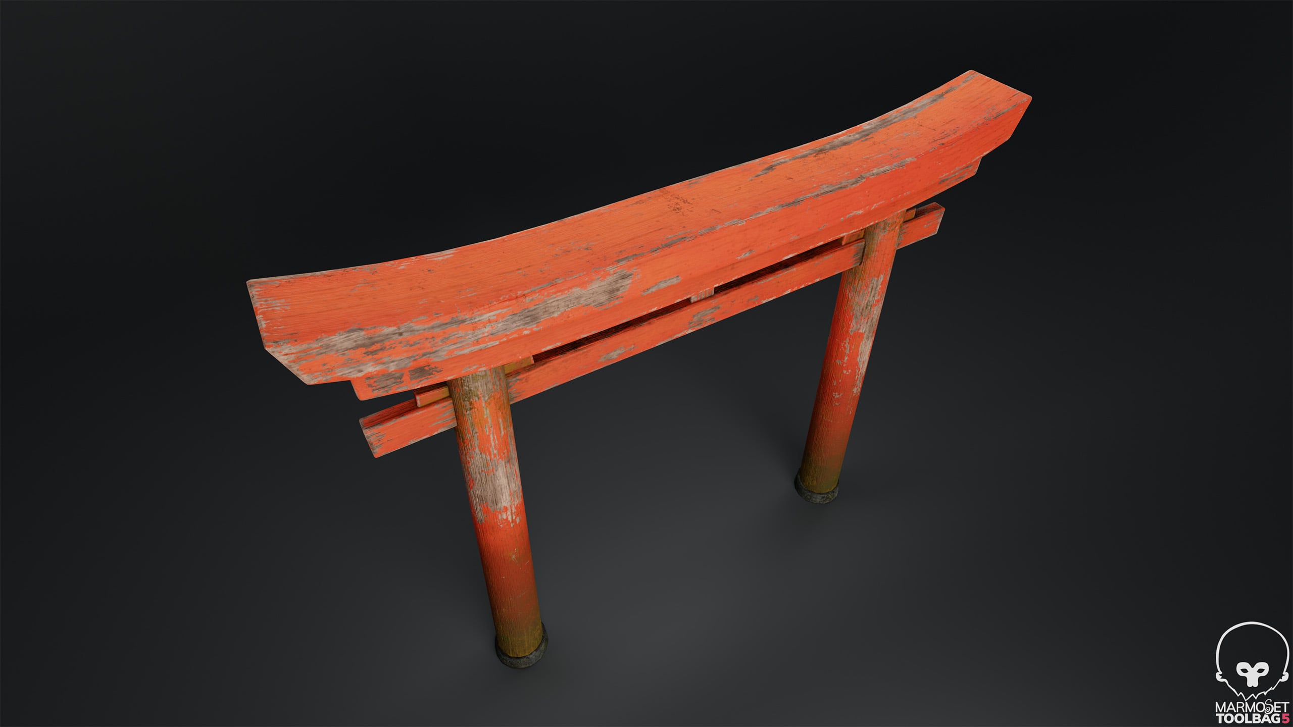 The damage could probably be more localized and more logically placed. For example, have deeper dents on the lower edges of the lower beam, but not the upper edges (in case this is an environment where people might actually accidentally bump against it with stuff, it also looks you might have gone for something like that, but it could also be coincidence). Maybe it was ruined and later salvaged etc.