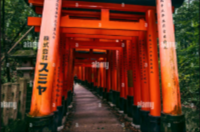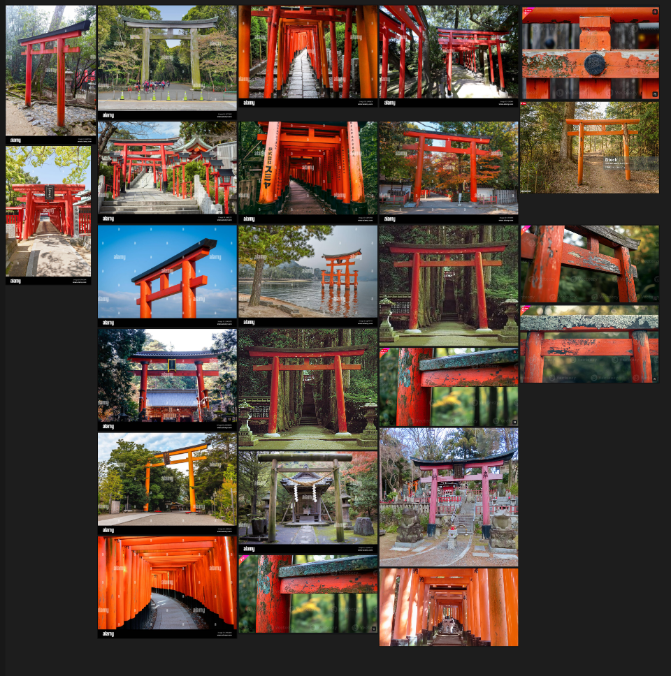 I like the images with the repeating torii. You could try a layout like like this for something a bit unusual (and thus, eye-catching)
