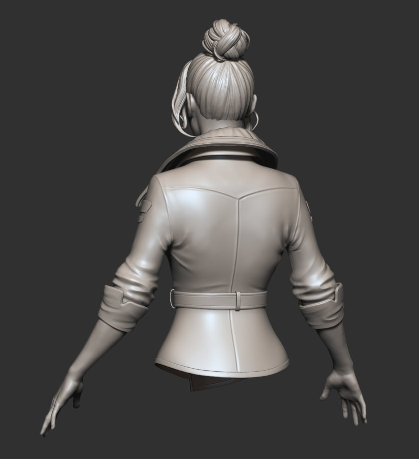 I want to make it look a bit stylized so I'm trying to achieve that by simplifying the hair and clothing. I struggled a bit in making the flow of the hair look good because it affects the silhouette quite a lot. I'm going to extend the torso and arms next after refining the hair a bit.