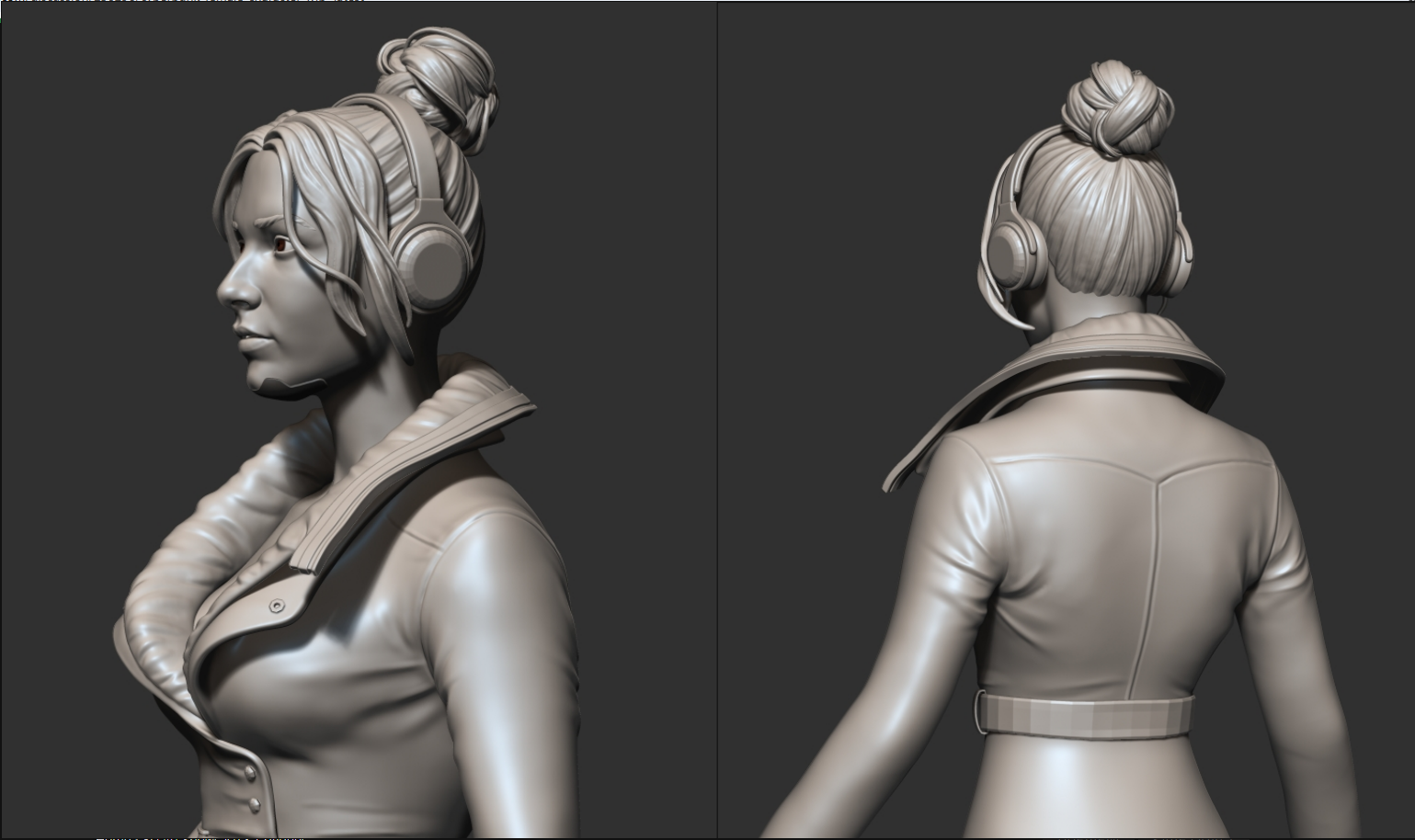 I worked more on the hair and extended the torso and arms, quickly modelled and placed the headphones. I'm still working on the little hard surface parts and trying to design the shapes properly. I'm looking up some designs and patterns to put on the clothes, I'll probably make them in painter. I'm still looking for ways to add a bit more detail, a bit more professionalism in this.